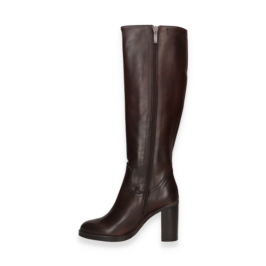 Preis inkl. MwSt.Die eleganten Stiefel von Phillip Hardy in Dunkelbraun vereinen zeitlose Ästhetik mit modernem Design. Diese Stiefel für Damen bestechen durch ihre schlanke Silhouette und den hohen Schaft von 39 cm, der jedem Outfit eine edle Note verleiht. Der 8,5 cm hohe Absatz sorgt für eine ansprechende Höhe, während die hochwertige Lederoberfläche einen luxuriösen Glanz bietet. Die Stiefel sind perfekt für stilvolle Anlässe und verleihen jedem Look eine raffinierte Eleganz.