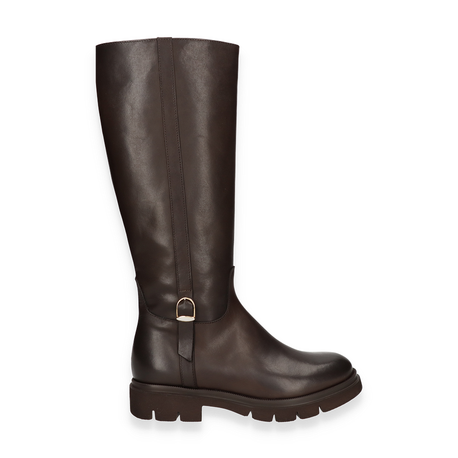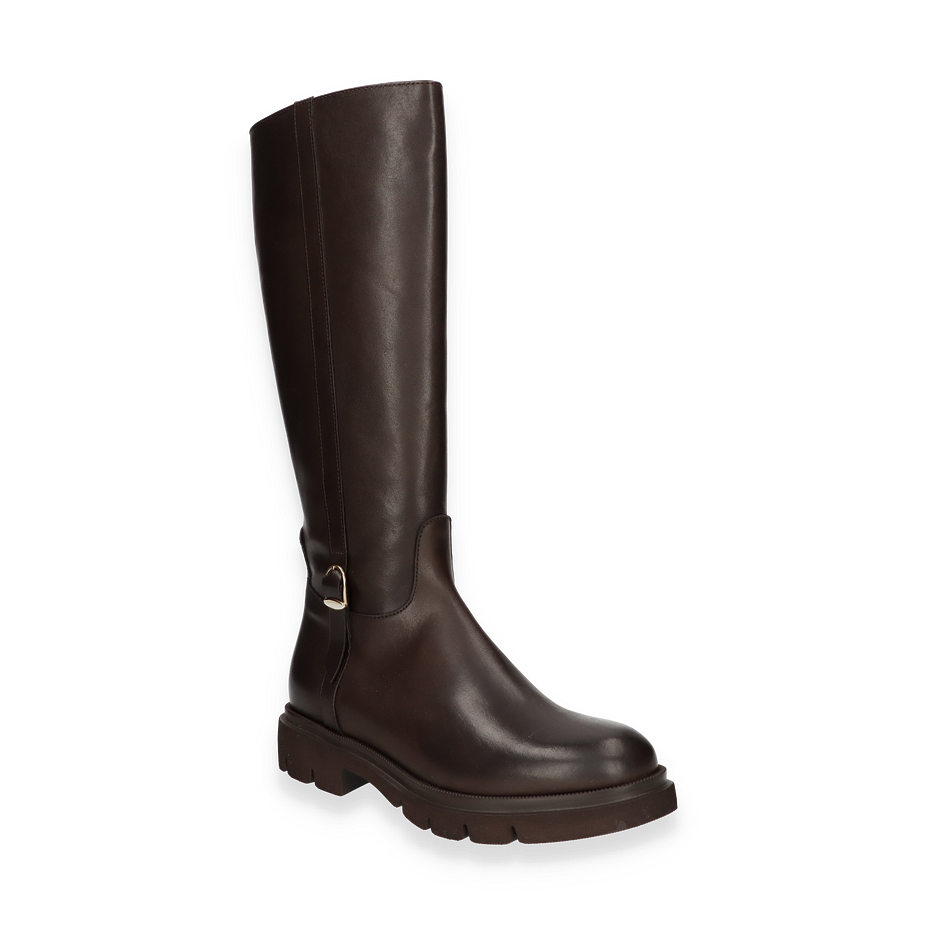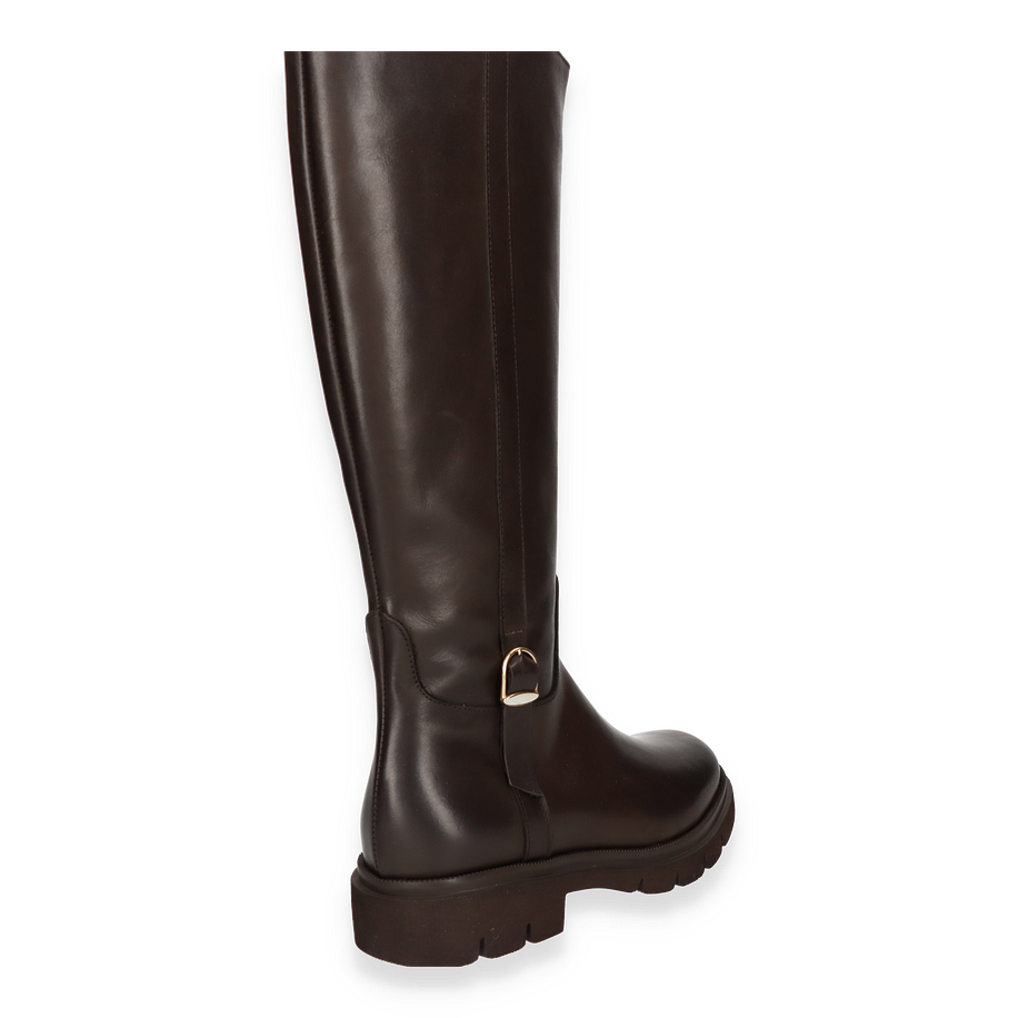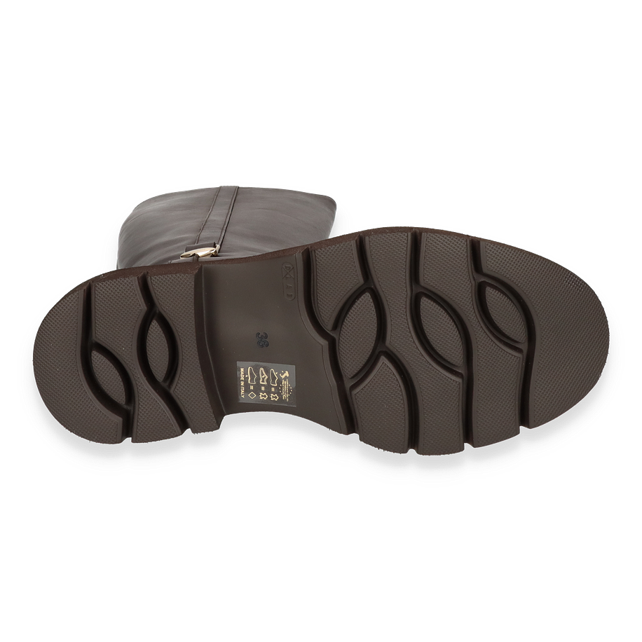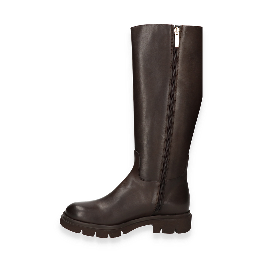 Der Phillip Hardy Stiefel für Damen präsentiert sich in einem eleganten Dunkelbraun, das jedem Outfit eine zeitlose Note verleiht. Der Stiefel besticht durch seine schlanke Silhouette und die hochwertige Verarbeitung aus Leder, die sowohl den Schaft als auch das Obermaterial umfasst. Mit einer Schafthöhe von 37 cm und einer Schaftweite von 30 cm bietet er eine perfekte Passform und einen stilvollen Look. Der dezente Absatz von 4 cm sorgt für eine angenehme Erhöhung, während die robuste Gummisohle für sicheren Halt sorgt.