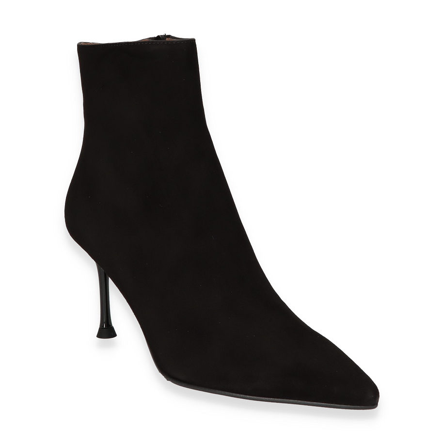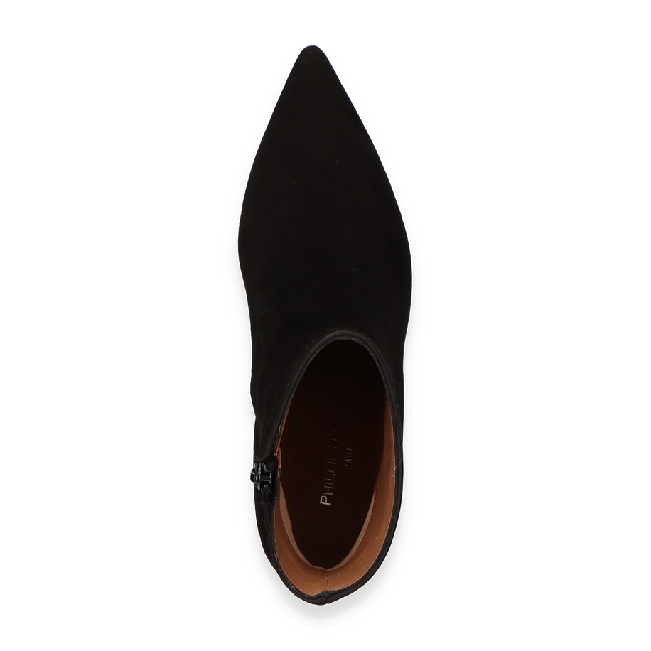 Schwarze Stiefeletten sind aus Ihren Alltagslooks kaum noch wegzudenken? Dann sollten Sie sich unbedingt ein neues Paar anschaffen - wie etwa diese tollen Phillip Hardy Stiefeletten für Damen! Die modischen Schuhe sind aus besonders feinem Wildleder in klassischem Schwarz gefertigt und bringen damit einen Hauch von Luxus in Ihre Outfits. Die nach vorne hin spitz zulaufende Form schmeichelt der Figur und auch die schmalen mittelhohen Absätze machen schlanke und endlos lange Beine. Perfekt für Office und Freizeit!