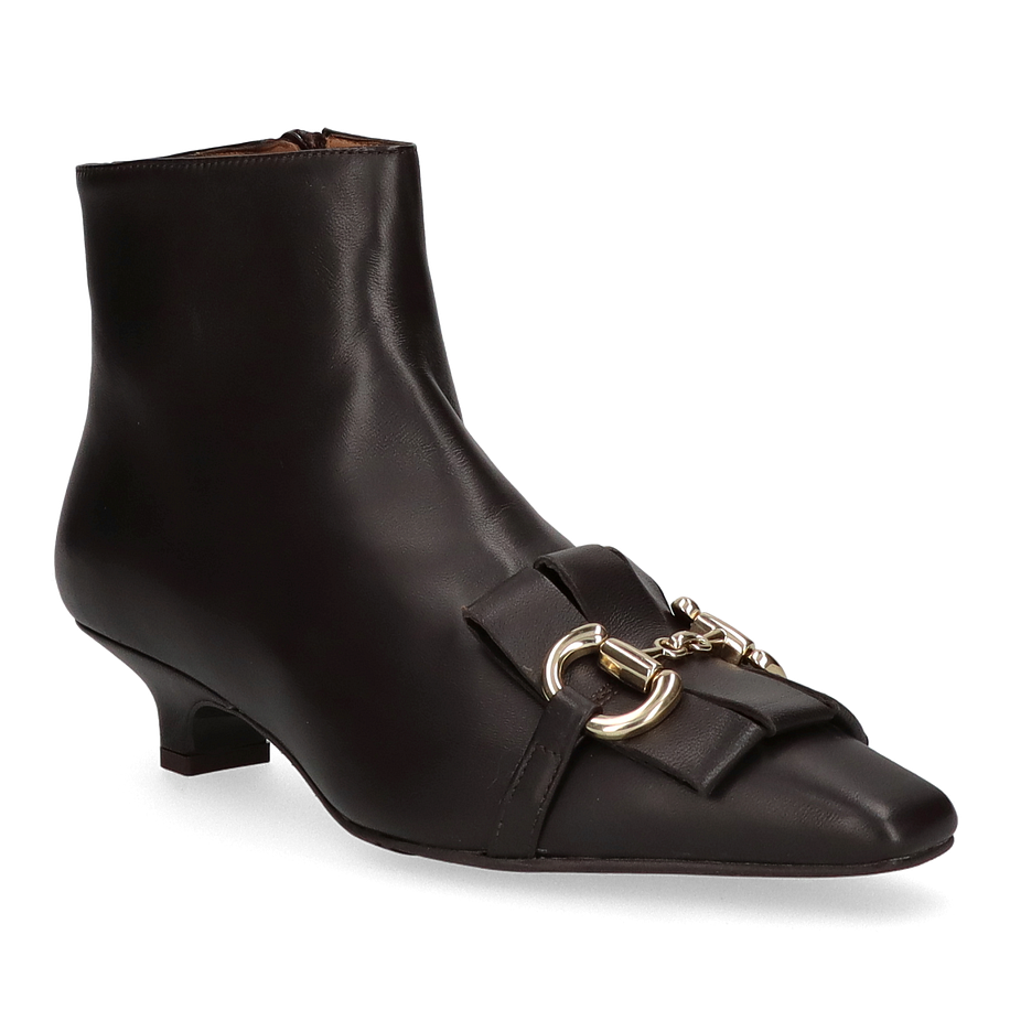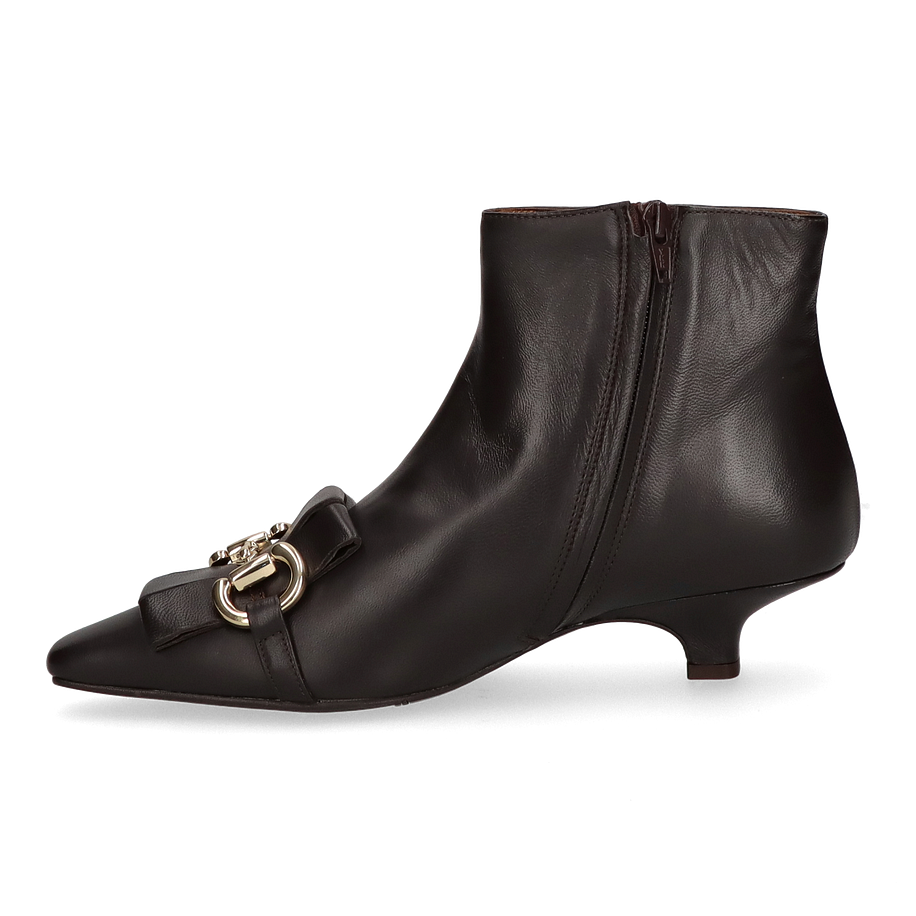 Preis inkl. MwSt.Erleben Sie zeitlose Eleganz mit den klassischen Stiefeletten von Phililip Hardy für Damen. Diese exquisiten Schuhe in dunkelbraunem Leder vereinen Stil und Komfort auf höchstem Niveau. Der Kittenheel mit einer Absatzhöhe von 3,5 cm bietet eine perfekte Balance zwischen Eleganz und Tragbarkeit. Das Innenfutter aus Leder sorgt für ein angenehmes Tragegefühl, während die Ledersohle und die Gummisohle für optimale Haltbarkeit und Rutschfestigkeit sorgen. Ein besonderes Highlight ist die Schmuckschnalle auf der Spitze, die den Schuhen einen Hauch von Raffinesse verleiht. Die hochwertigen Materialien und die sorgfältige Verarbeitung machen diese Stiefeletten zu einem unverzichtbaren Begleiter für jede stilbewusste Frau. Ideal für den täglichen Gebrauch oder besondere Anlässe, diese Stiefeletten sind die perfekte Ergänzung für Ihre Garderobe.