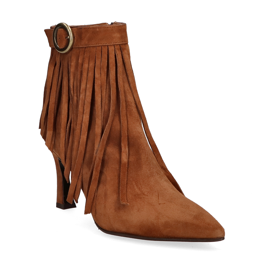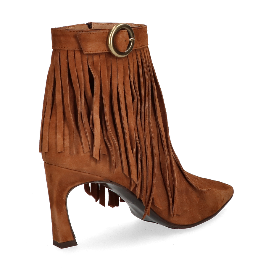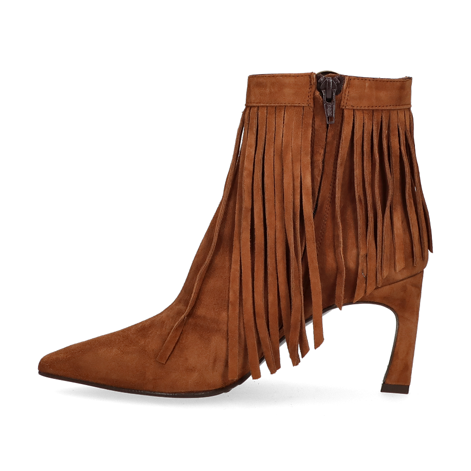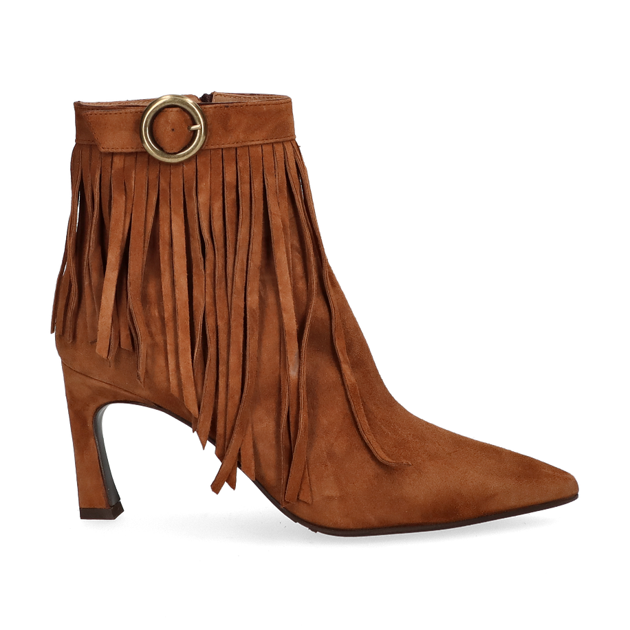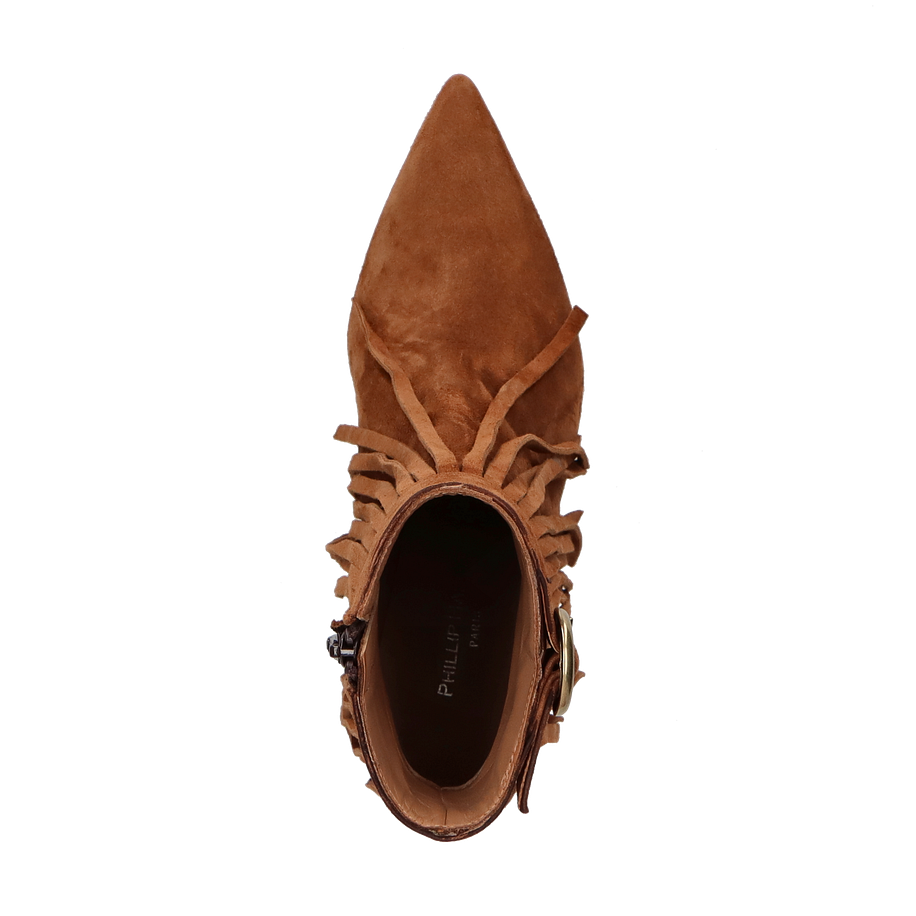 Preis inkl. MwSt.Die Phillip Hardy Stiefeletten in elegantem Braun vereinen Stil und Komfort auf beeindruckende Weise. Diese Stiefeletten für Damen zeichnen sich durch ihr auffälliges Design mit dekorativen Fransen und einem markanten, goldfarbenen Schnallenverschluss aus. Der spitz zulaufende Schnitt und der 7,5 cm hohe Absatz verleihen dem Schuh eine feminine Silhouette, die sowohl für den Alltag als auch für besondere Anlässe geeignet ist.