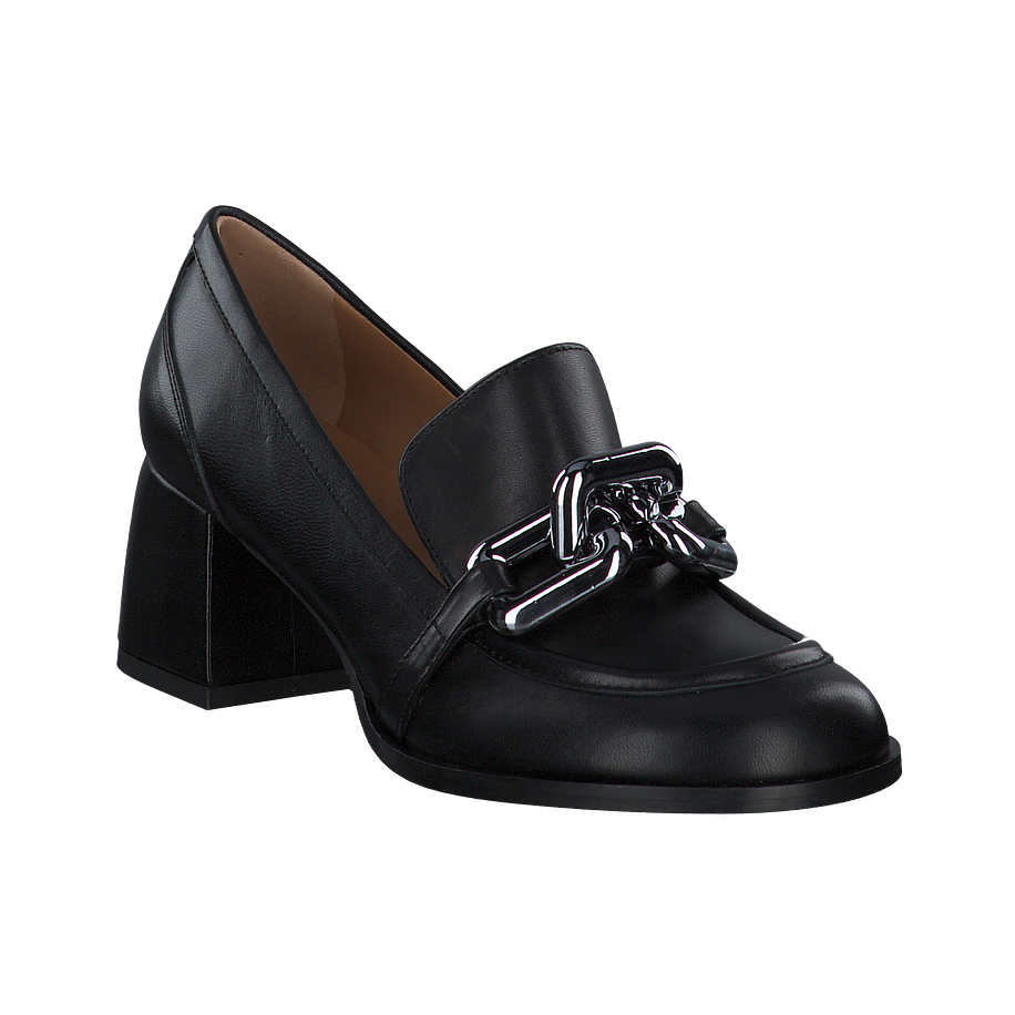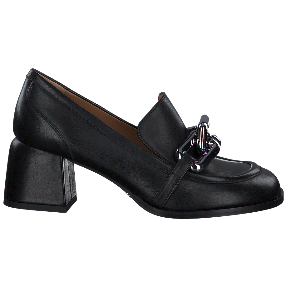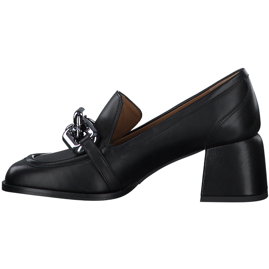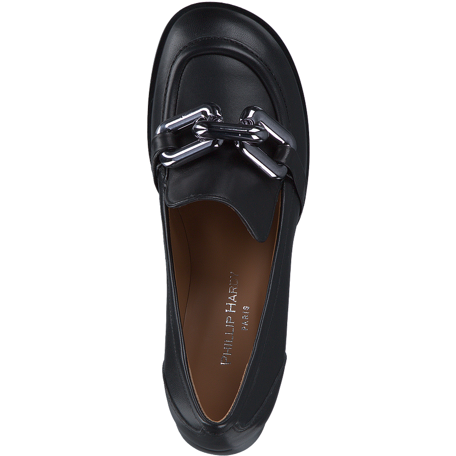Bequeme Schuhe sind im Alltlag das A und O - noch besser wird es, wenn sie auch noch so lässig aussehen wie diese schicken Phillip Hardy Trotteur für Damen! Die modischen Damenschuhe sind aus feinstem schwarzem Leder gefertigt, welches sich angenehm anfühlt, besonders robust bei jeglichem Wetter agiert und zudem für einen hochwertigen Look sorgt. Die derben Blockabsätze verleihen den schlichten schwarzen Phillip Hardy Trotteur einen coolen Charme und sorgen für ein sicheres und angenehmes Tragegefühl bei jedem Schritt. Für einen zusätzlichen Hingucker sind die Trotteur mit silberfarbenen Kettenverzierungen aus Metall besetzt.