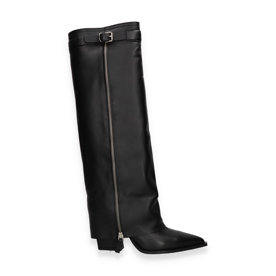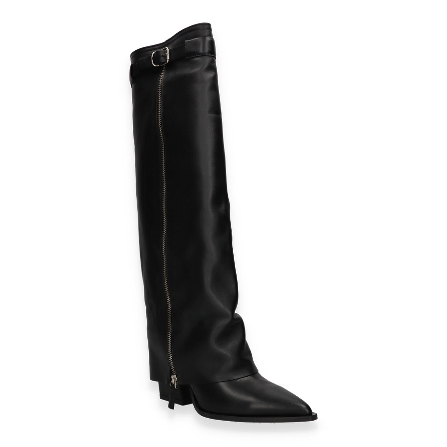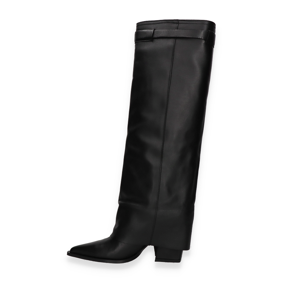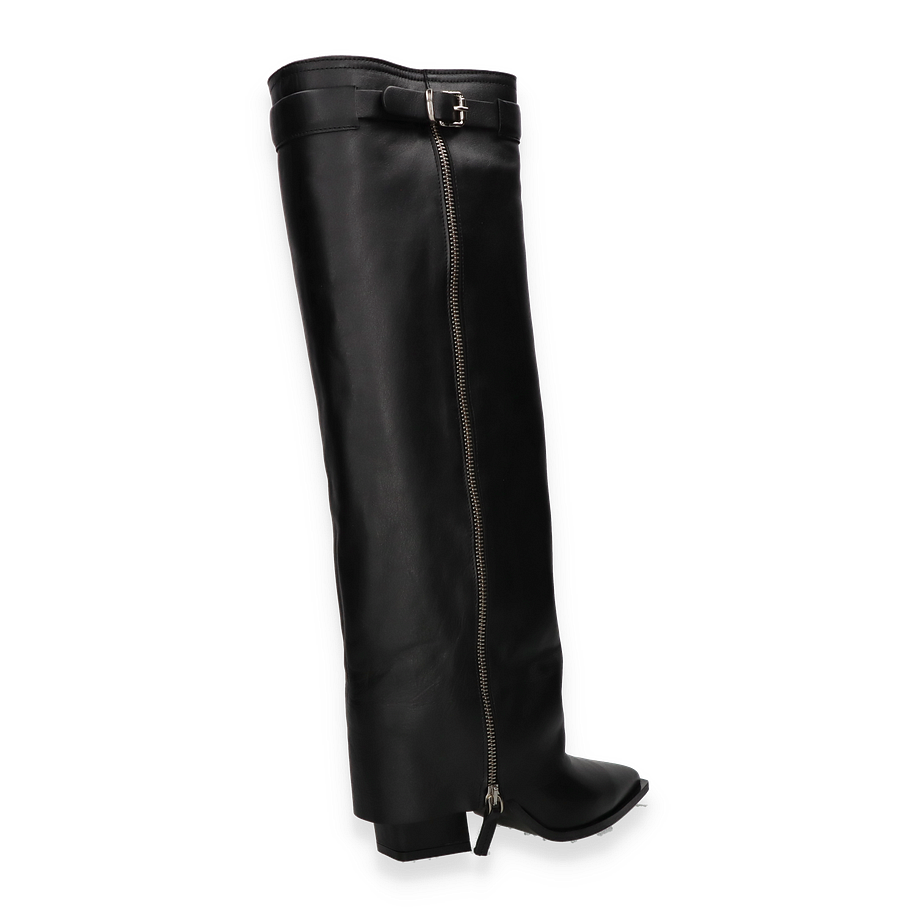 Preis inkl. MwSt.Die Phillip Hardy Western Boots für Damen präsentieren sich in einem eleganten Schwarz und verkörpern zeitlose Eleganz und Stil. Mit einem markanten Design, das durch die hohe Schafthöhe von 38 cm und die schmale Schaftweite von 15 cm besticht, sind diese Stiefel ein echter Hingucker. Der seitliche Reißverschluss und die dezente Schnalle verleihen dem Look eine raffinierte Note, während die spitze Zehenpartie den klassischen Western-Stil unterstreicht.