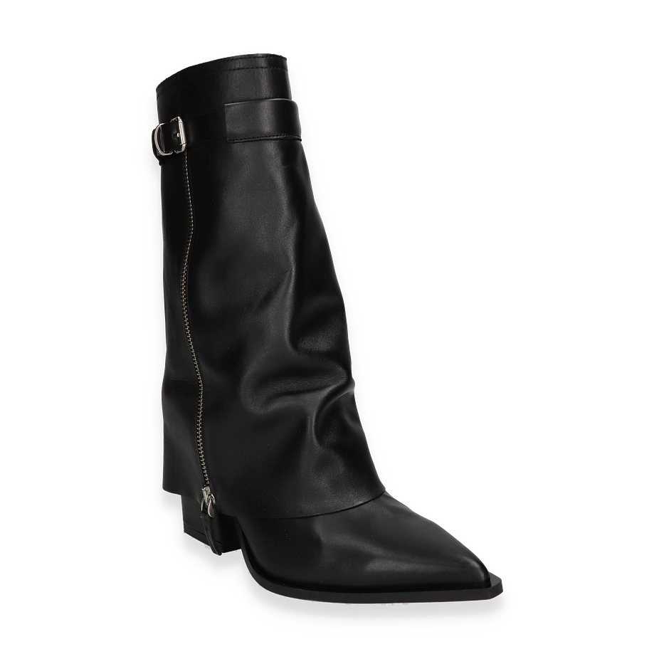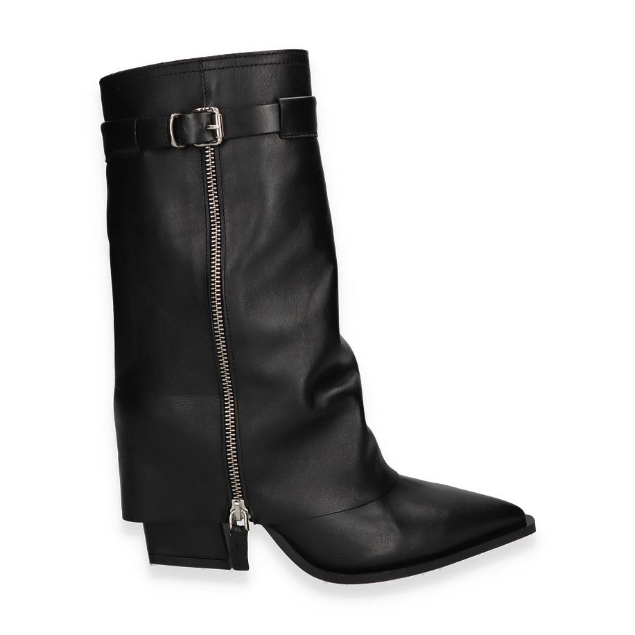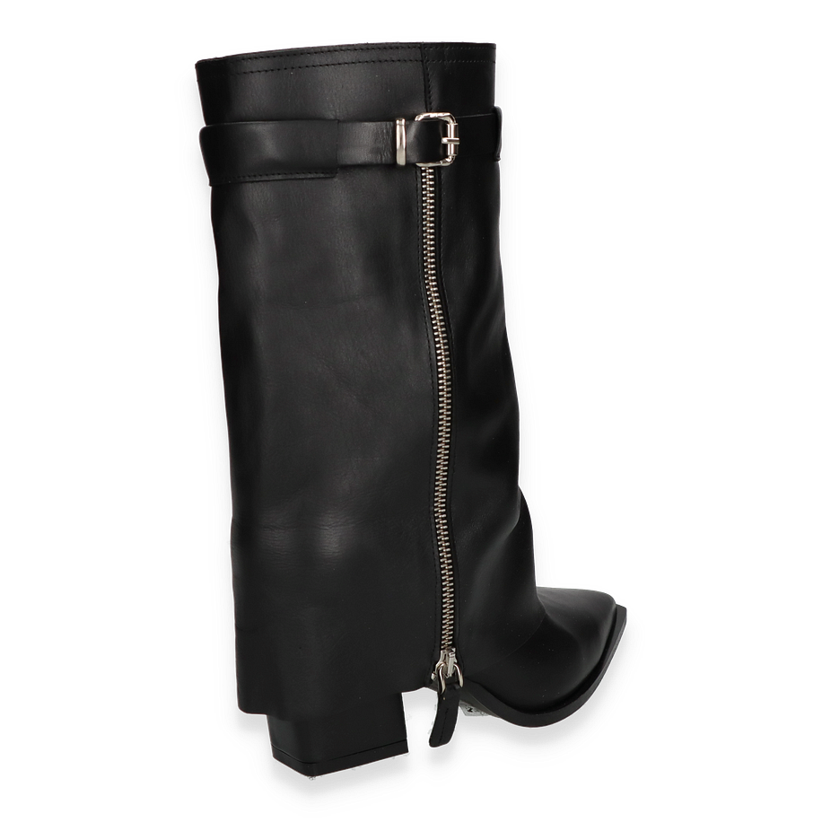 Preis inkl. MwSt.Entdecken Sie die eleganten Western Boots von Phillip Hardy in klassischem Schwarz, die für Damen entworfen wurden. Diese Stiefel zeichnen sich durch ihr stilvolles Design mit einem markanten Reißverschluss und einer dekorativen Schnalle aus. Der spitze Schnitt und die raffinierte Silhouette verleihen jedem Outfit eine edle Note. Mit einer Absatzhöhe von 8,5 cm bieten sie eine perfekte Balance zwischen Komfort und Eleganz, während der Schaft mit einer Höhe von 22 cm und einer Breite von 32 cm für eine schmeichelhafte Passform sorgt.
