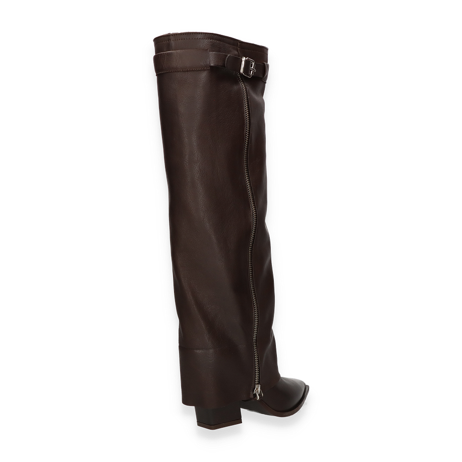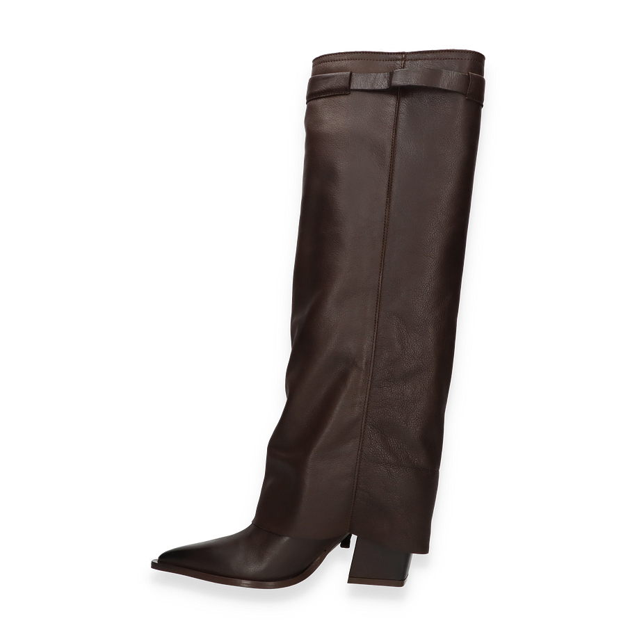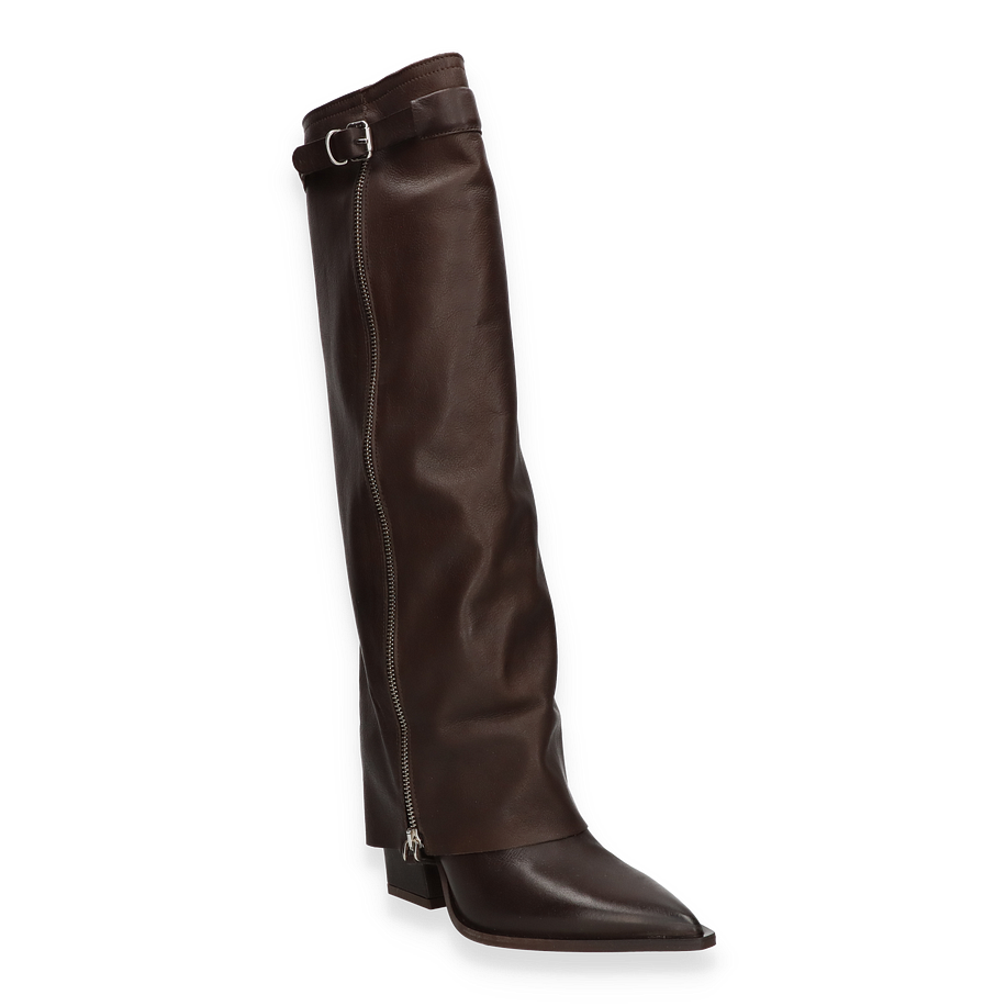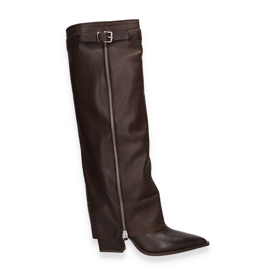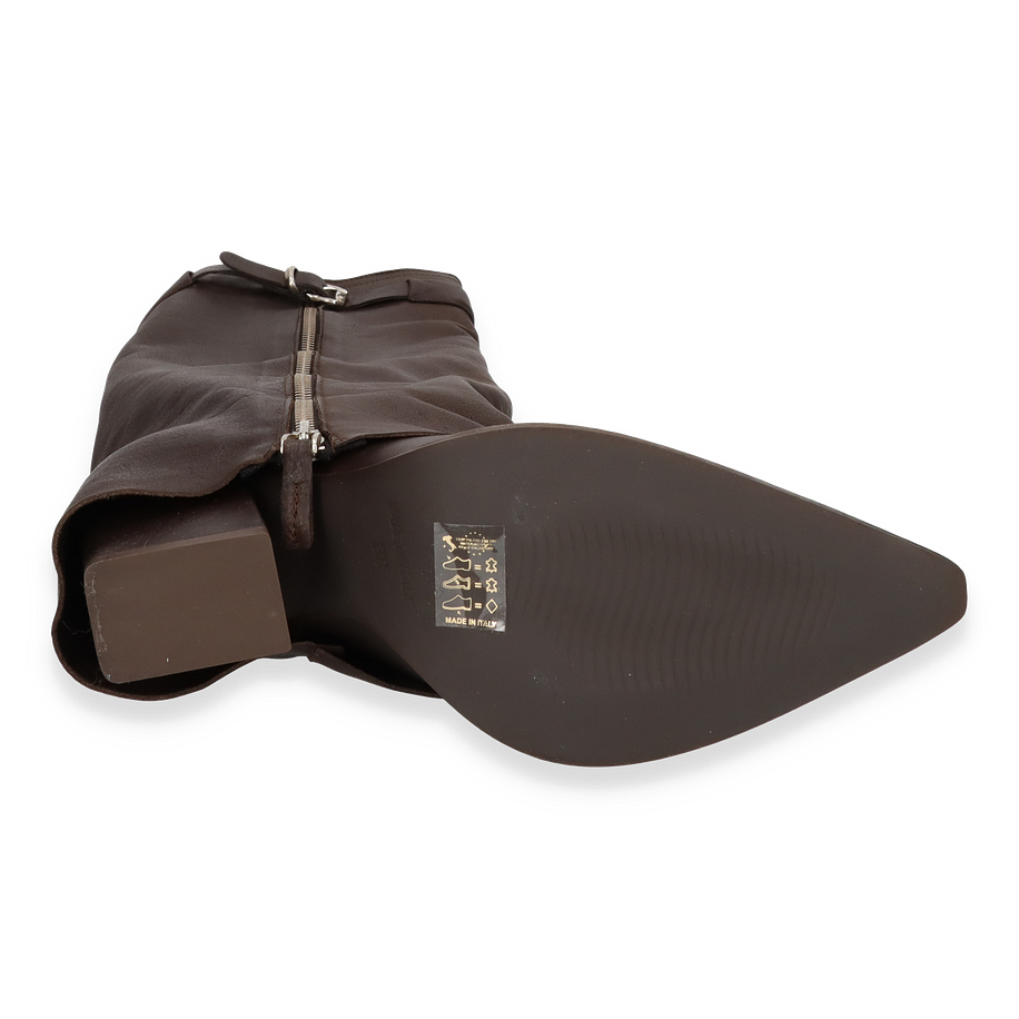Preis inkl. MwSt.Entdecken Sie die eleganten Western Boots von Phillip Hardy für Damen, die in einem tiefen Dunkelbraun erstrahlen. Diese Stiefel vereinen Stil und Funktionalität mit ihrem markanten Design, das durch einen seitlichen Reißverschluss und eine dezente Schnalle akzentuiert wird. Der spitze Zehenbereich und der robuste Blockabsatz von 8 cm verleihen ihnen eine zeitlose Eleganz, während die hohe Schafthöhe von 38 cm einen beeindruckenden Auftritt garantiert.
