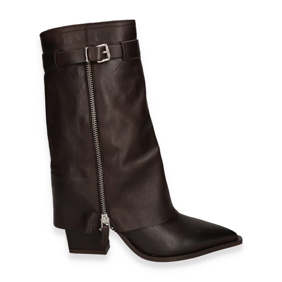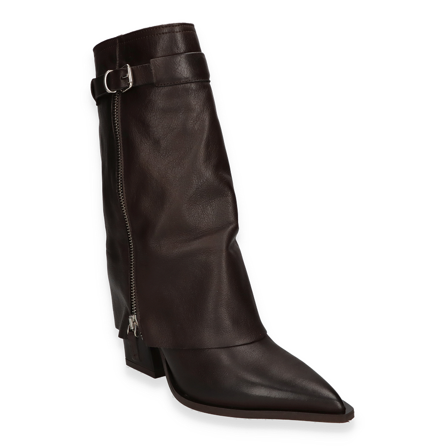 Preis inkl. MwSt.Entdecken Sie die eleganten Western Boots von Phillip Hardy, die in einem tiefen Dunkelbraun erstrahlen. Diese für Damen entworfenen Stiefel vereinen klassischen Western-Stil mit modernem Chic. Der raffinierte Schnitt und die markante Schnalle verleihen dem Schuh einen zeitlosen Charakter, während der seitliche Reißverschluss für einen Hauch von Raffinesse sorgt. Der 8,5 cm hohe Absatz betont die Silhouette und bietet gleichzeitig Komfort und Stabilität.
