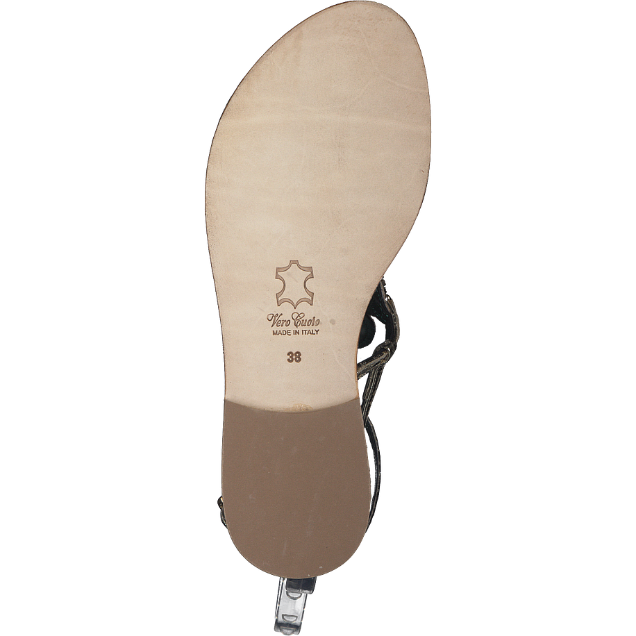Dieser Zehentrenner bietet nicht nur optische Raffinesse, sondern auch Komfort und Qualität. Hergestellt in Italien, zeugt die hochwertige Verarbeitung von handwerklichem Können. Die flexible Sohle sorgt für ein angenehmes Tragegefühl, während die verstellbaren Riemen eine individuelle Passform ermöglichen. Perfekt für sommerliche Anlässe, bei denen Stil und Komfort gleichermaßen gefragt sind. Ein Must-have für jede modebewusste Frau, die Wert auf Details legt.