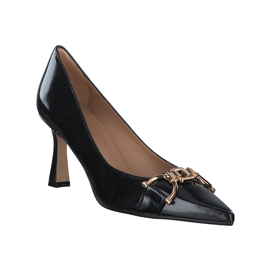 Preis inkl. MwSt.In diesen schwarzen Phillip Hardy Pumps werden Sie sich garantiert so richtig wohlfühlen - und können dabei das außergewöhnliche und überaus elegante Design der Damenschuhe genießen! Die modischen Pumps sind aus feinem schwarzem Leder gefertigt, welches durch goldfarbene Schnallenverzierungen optimal in Szene gesetzt wird. Dies sorgt für einen tollen Hingucker und macht die Schuhe zu stylishen Begleitern im Alltag. Freuen Sie sich auf gelungene Outfits zu jedem Anlass gepaart mit einem besonders angenehmen Tragekomfort bei jedem Schritt.