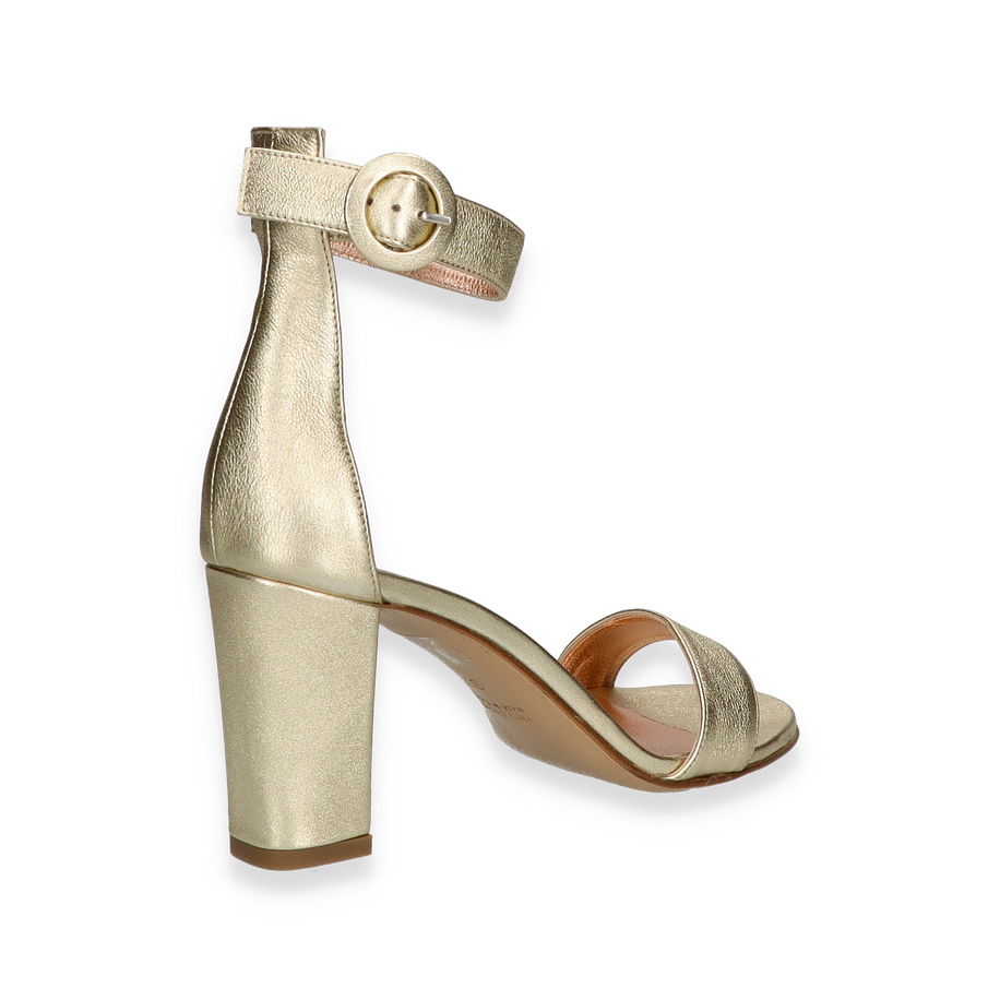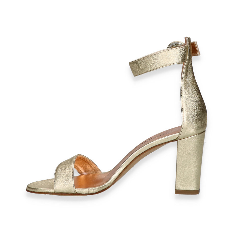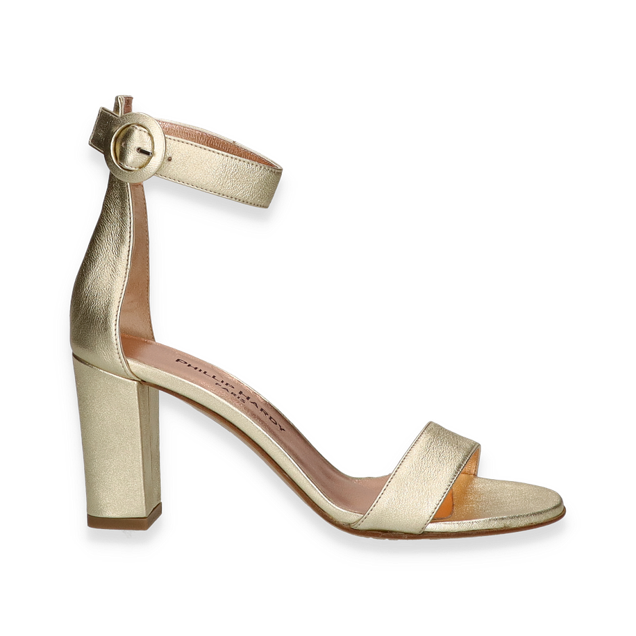 Die Phillip Hardy Sandaletten, Modellname GIANV1, präsentieren sich in einem eleganten Goldton, der jedem Outfit einen Hauch von Luxus verleiht. Der 8 cm hohe Absatz sorgt für eine ansprechende Silhouette und bietet gleichzeitig Stabilität und Komfort. Der zarte Riemen mit einer Schnalle umschließt den Knöchel und verleiht der Sandalette eine feminine Note, während das offene Design die Füße stilvoll in Szene setzt. Diese Sandaletten sind die perfekte Wahl für Damen, die Eleganz und Komfort vereinen möchten.