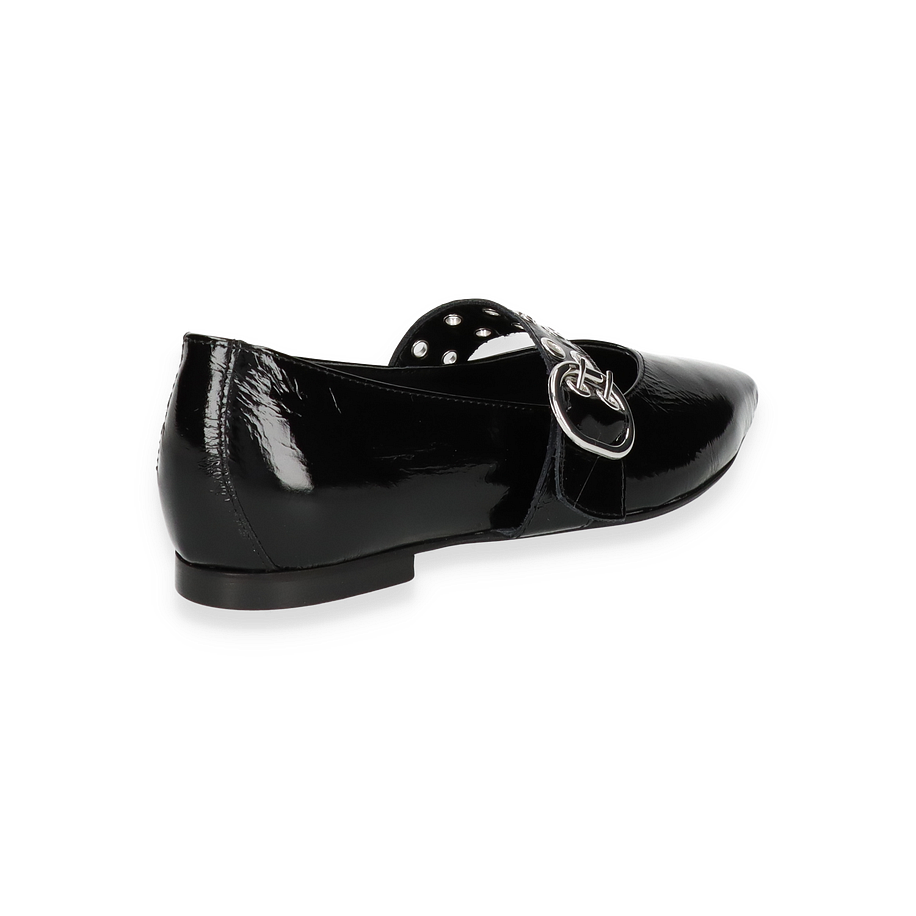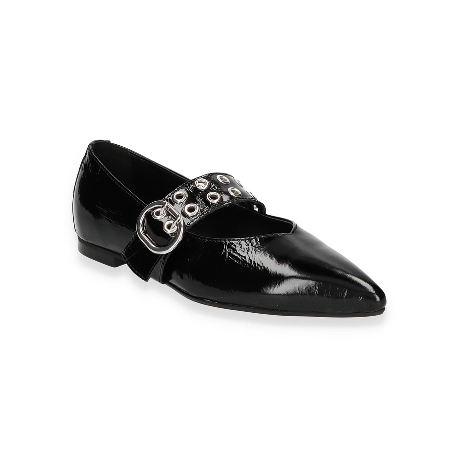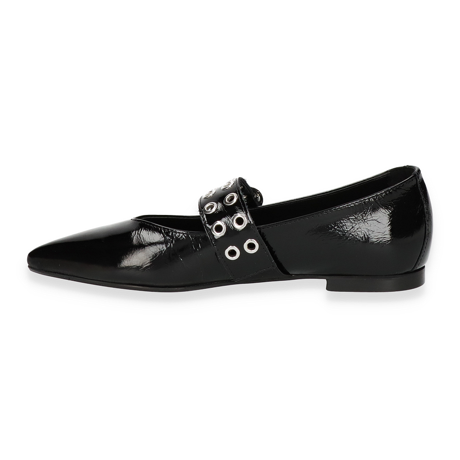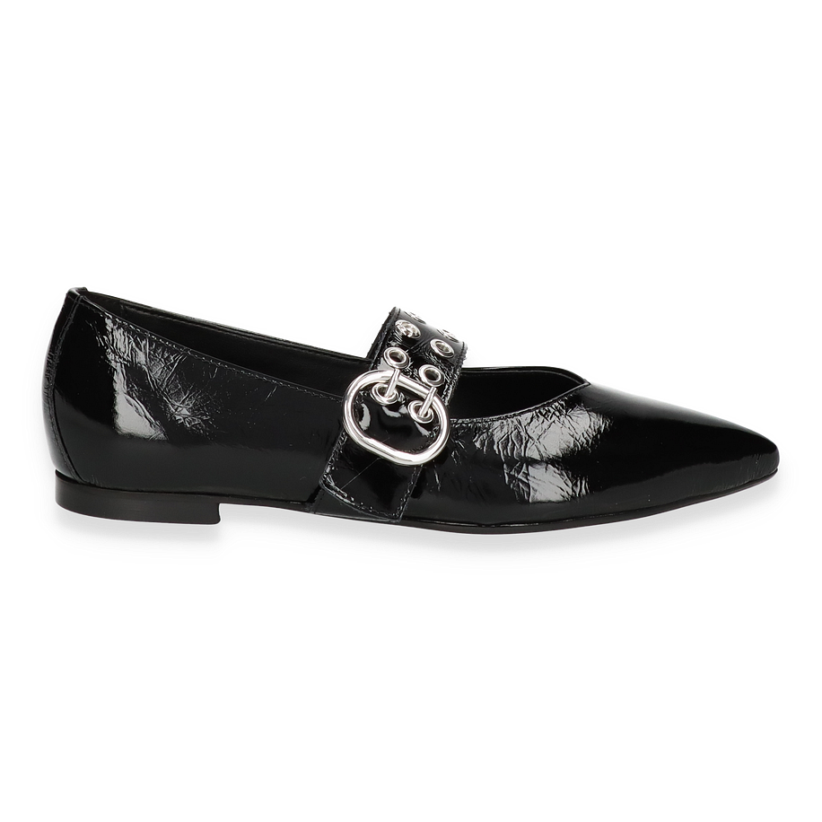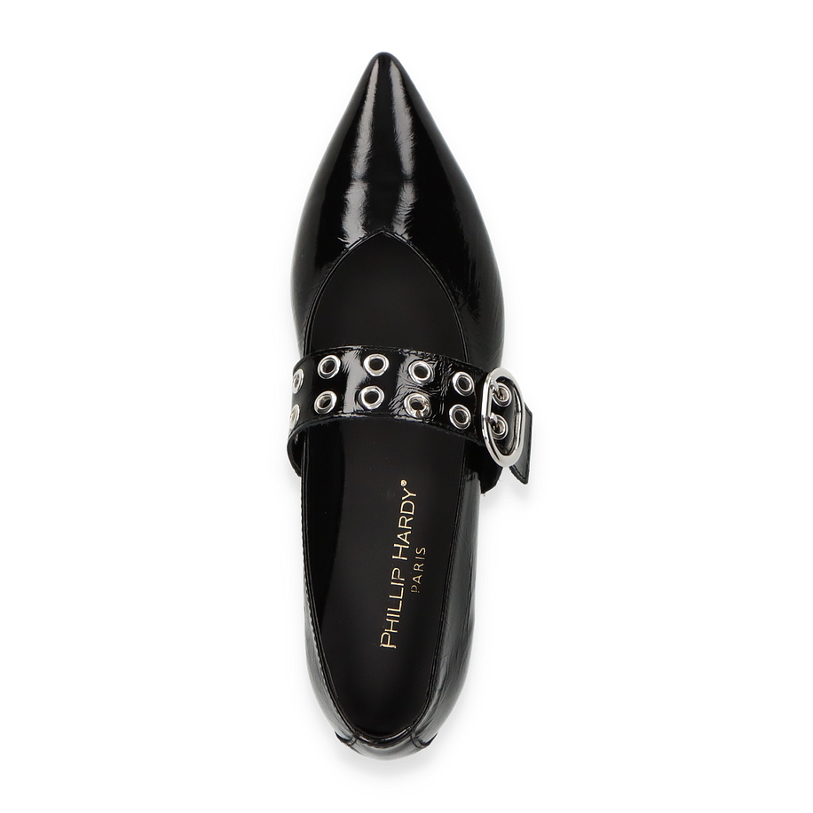 Die Phillip Hardy Ballerinas HARPER in elegantem Schwarz vereinen Stil und Komfort für Damen. Das glänzende Leder-Obermaterial verleiht diesen Schuhen einen luxuriösen Look, während die auffällige Schnalle mit Metallösen einen modernen Akzent setzt. Die spitz zulaufende Form und das flache Design machen sie zu einem vielseitigen Begleiter für verschiedene Anlässe, von formellen Veranstaltungen bis hin zu entspannten Ausflügen.