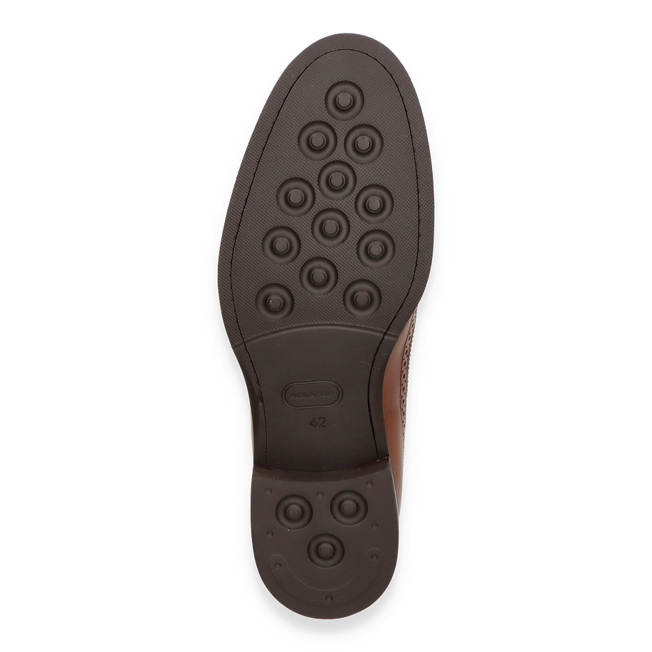 Preis inkl. MwSt.Der Phillip Hardy Schnürschuh für Herren präsentiert sich in einem eleganten Mittelbraun und besticht durch sein klassisches Design. Die aufwendigen Brogue-Details verleihen dem Schuh eine zeitlose Ästhetik, während die geschwungene Linienführung und die feine Lochmusterung den hochwertigen Look unterstreichen. Die sorgfältige Verarbeitung und das edle Erscheinungsbild machen diesen Schuh zu einem perfekten Begleiter für formelle Anlässe und stilvolle Auftritte.