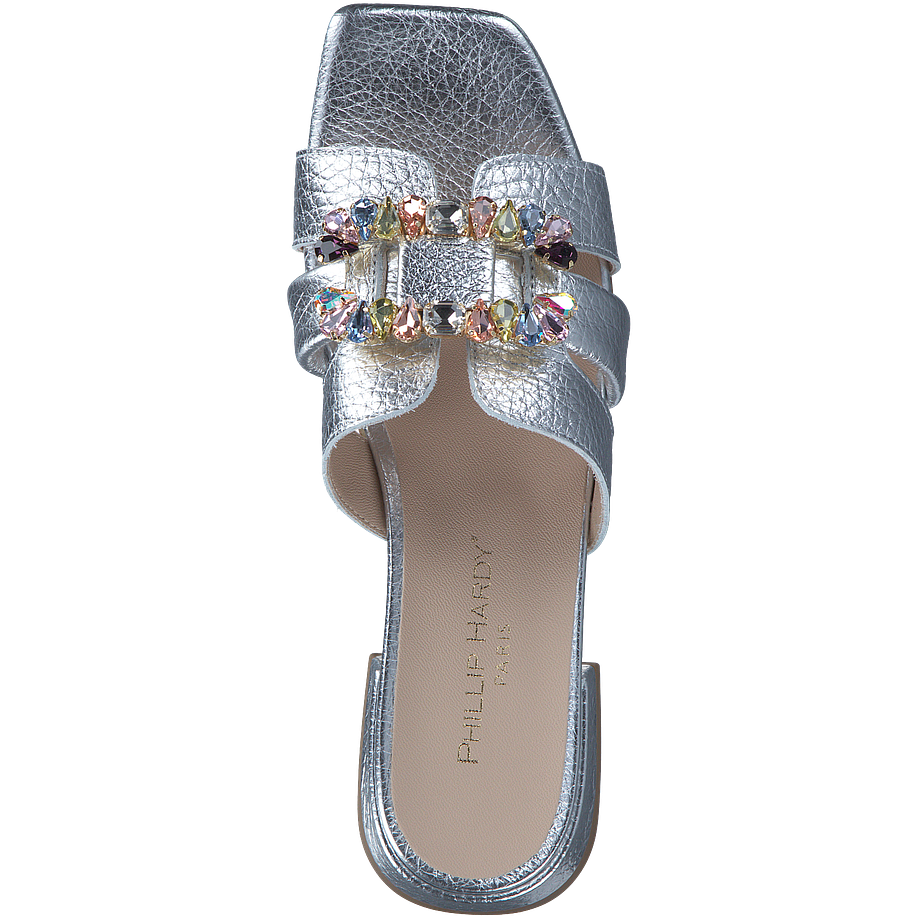 Entdecken Sie die stilvollen Pantoletten von Phillip Hardy, perfekt für Damen, die Wert auf Eleganz und Komfort legen. Diese Schuhe bestechen durch ihr silbernes Leder, das durch einen metallischen Glanz und eine Schnalle mit bunten Strasssteinen veredelt wird. Mit einer Absatzhöhe von 3 cm bieten sie eine angenehme Höhe, ohne dabei den Komfort zu beeinträchtigen. Das Obermaterial, das Innenfutter und die Innensohle sind aus hochwertigem Leder gefertigt, während die Sohle aus robustem Gummi besteht, um Langlebigkeit und Rutschfestigkeit zu gewährleisten. Mit diesen Pantoletten von Phillip Hardy verleihen Sie jedem Outfit einen Hauch von Glamour.