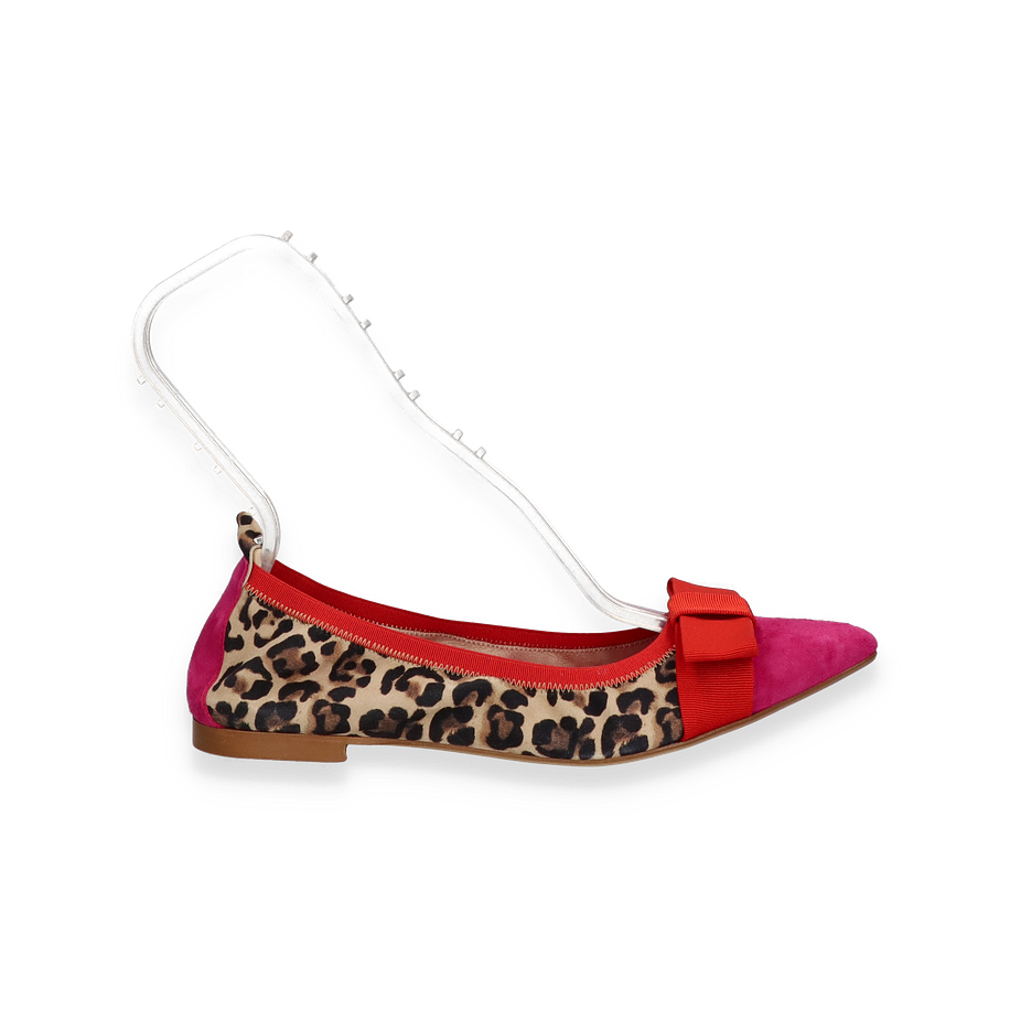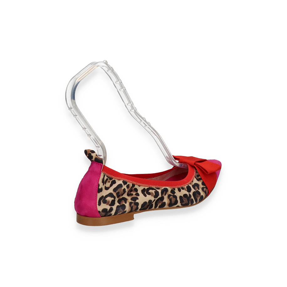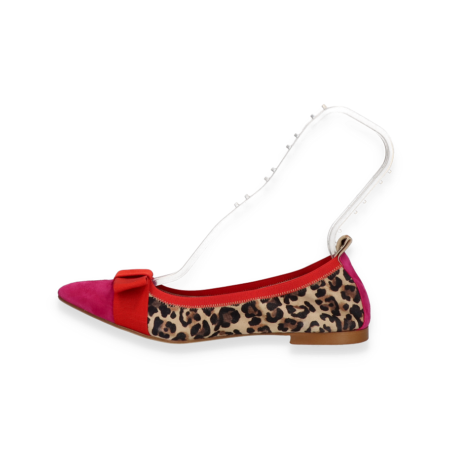 Die Ballerinas IVONNE von Phillip Hardy präsentieren sich in einem auffälligen, bunten Design, das Stil und Komfort für Damen vereint. Der Schuh besticht durch seine lebendige Kombination aus Leopardenmuster und kräftigen roten Akzenten, die durch eine elegante Schleife auf der Vorderseite ergänzt werden. Die flache Sohle und der niedrige Absatz von 1 cm bieten optimalen Tragekomfort, während die spitze Form dem Schuh eine moderne Note verleiht. Diese Ballerinas sind ein echter Hingucker und eignen sich perfekt für modebewusste Frauen, die ein Statement setzen möchten.
