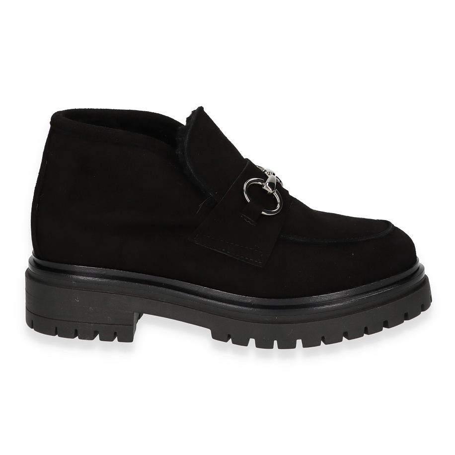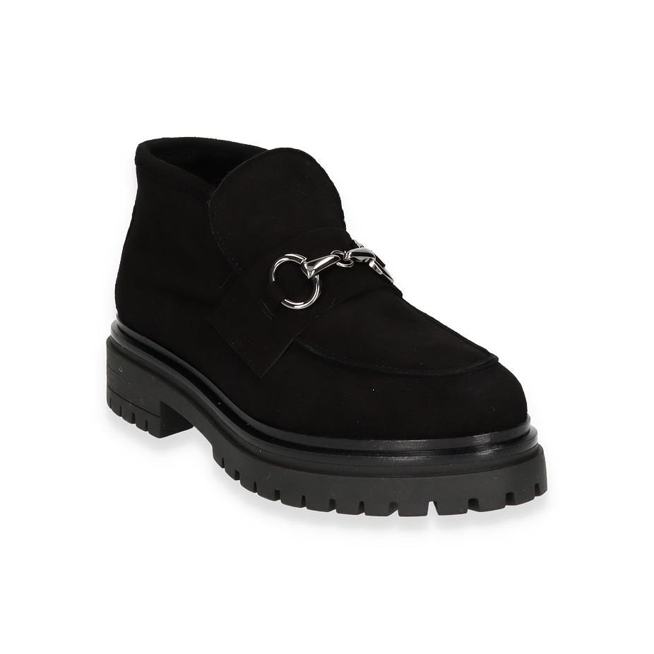 Preis inkl. MwSt.Der Phillip Hardy Ankle Boot "MELISSA" in elegantem Schwarz präsentiert sich als stilvolles Accessoire für Damen. Die robuste Silhouette wird durch ein markantes Metall-Detail auf der Vorderseite akzentuiert, das dem Schuh eine moderne Note verleiht. Die solide Sohle und der 3,5 cm hohe Absatz bieten nicht nur Stabilität, sondern auch einen subtilen Höhenvorteil. Das Design vereint zeitlose Eleganz mit einem Hauch von urbanem Chic, ideal für vielseitige Kombinationen in der Garderobe.