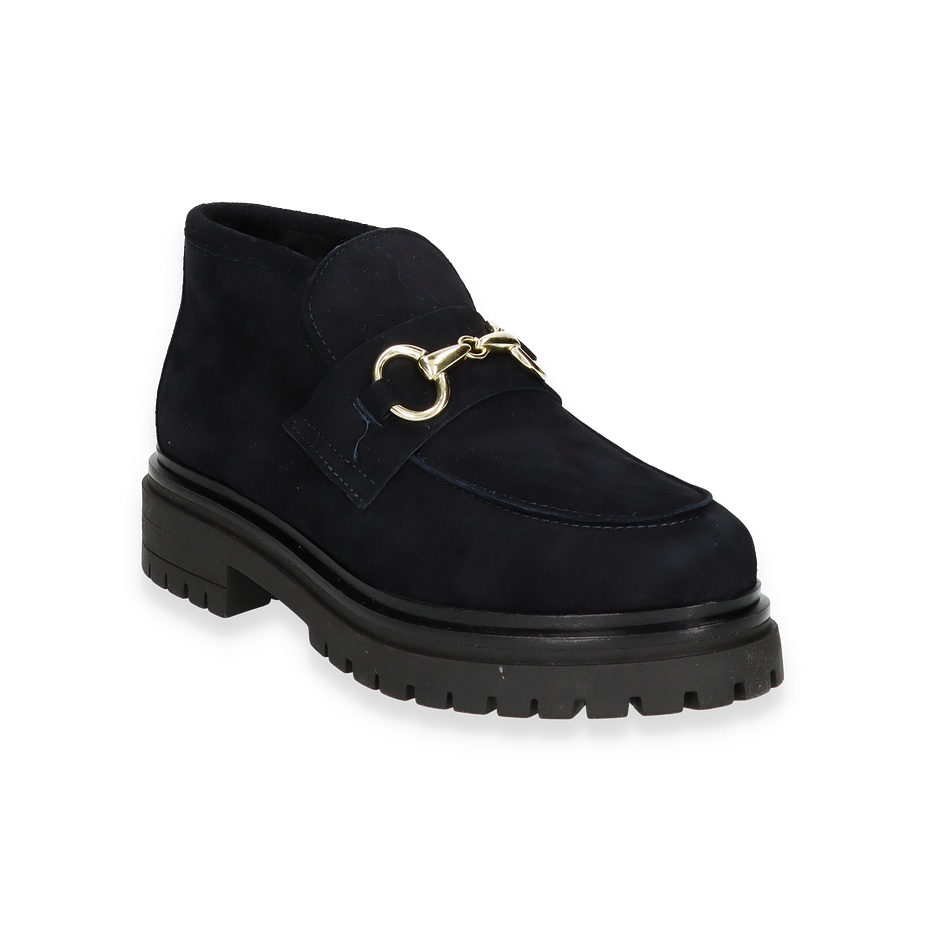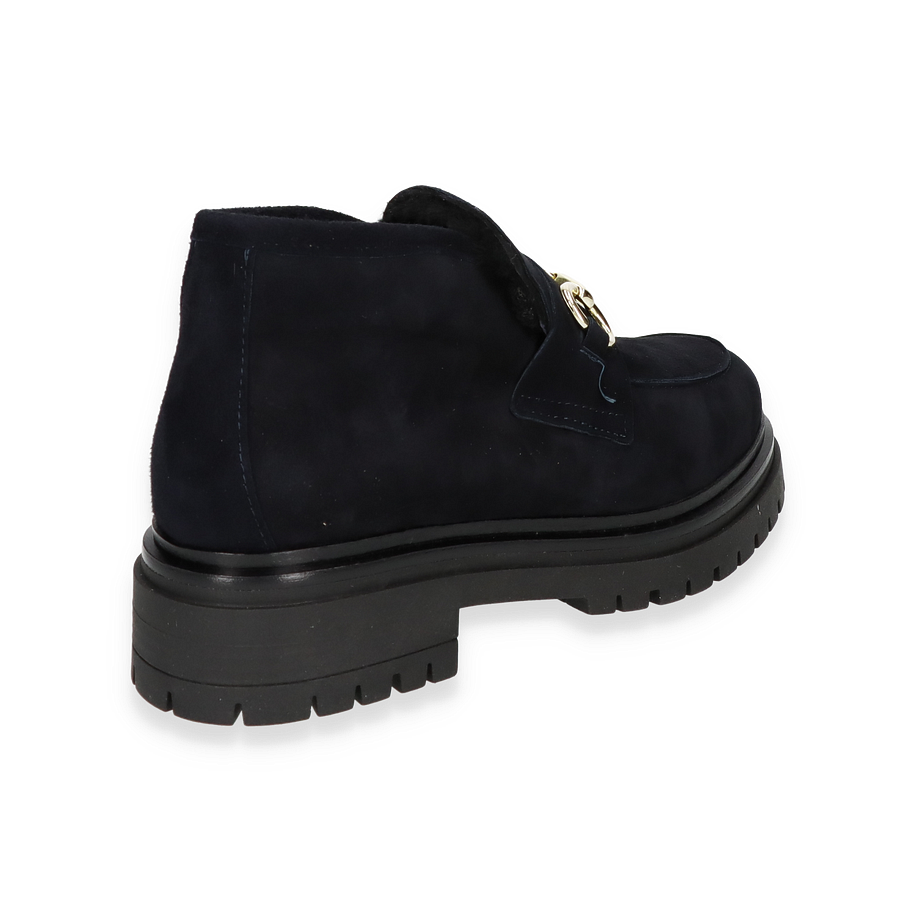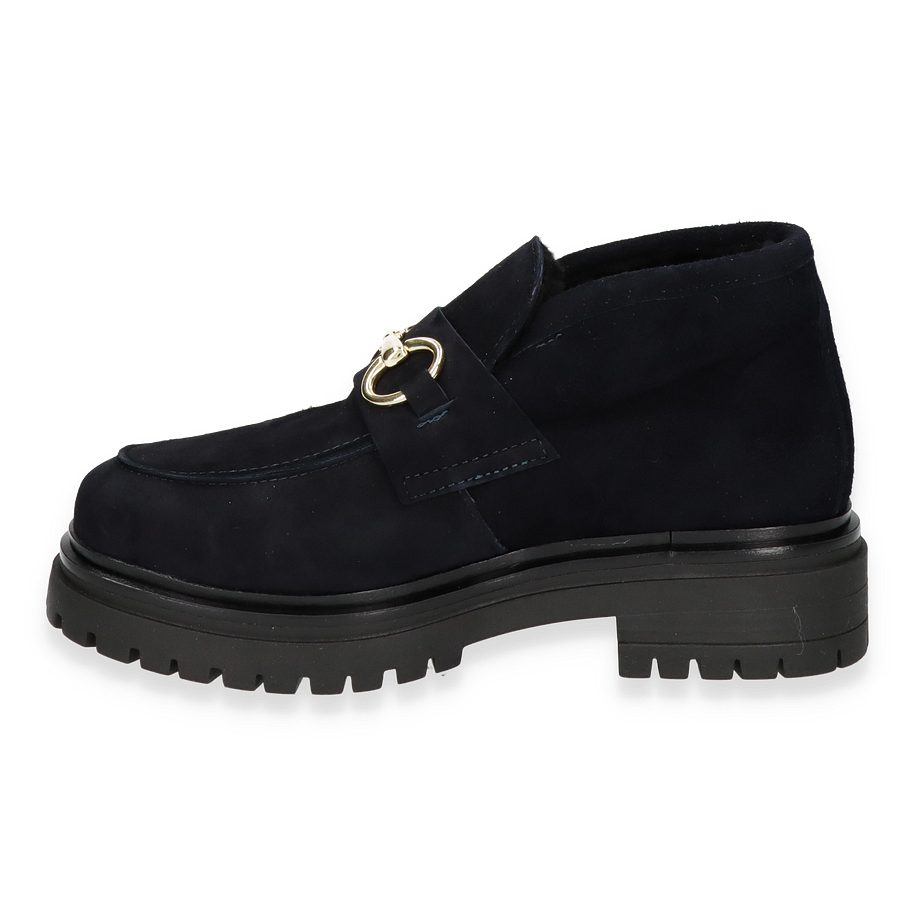 Preis inkl. MwSt.Die Phillip Hardy Ankle Boots MELISSA für Damen präsentieren sich in einem eleganten Dunkelblau, das jedem Outfit eine stilvolle Note verleiht. Der Schuh besticht durch sein hochwertiges Leder-Obermaterial, das mit einem goldfarbenen Detail verziert ist und so einen Hauch von Luxus ausstrahlt. Die robuste Gummisohle und der 3,5 cm hohe Absatz bieten nicht nur Komfort, sondern auch Stabilität, während das warme Futter für wohlige Wärme an kühleren Tagen sorgt.