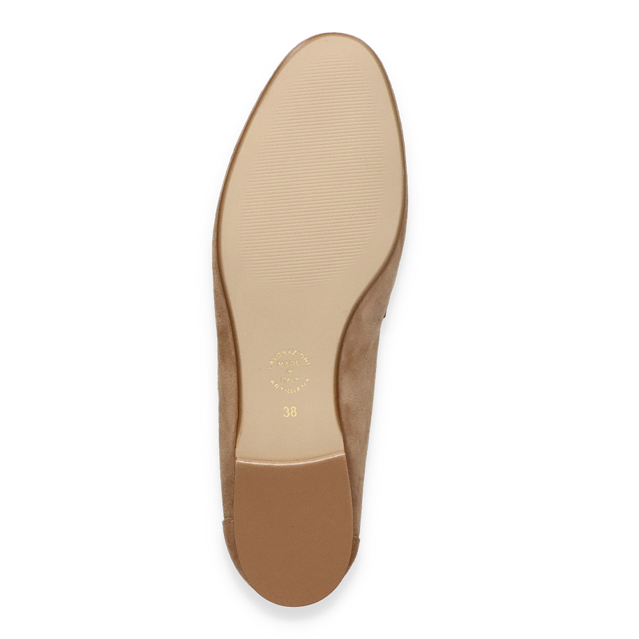 Unsere Slipper zeichnen sich durch erstklassige Materialien und eine sorgfältige Verarbeitung aus, die Langlebigkeit und Tragekomfort garantieren. Die weiche Innensohle sorgt für ein angenehmes Laufgefühl, während die flexible Außensohle optimalen Halt bietet. Das dezente Design ermöglicht vielseitige Kombinationsmöglichkeiten und macht diese Ballerinas zu einem zeitlosen Klassiker in Ihrer Schuhsammlung. Gönnen Sie sich den Luxus von Stil und Komfort in einem Schuh.