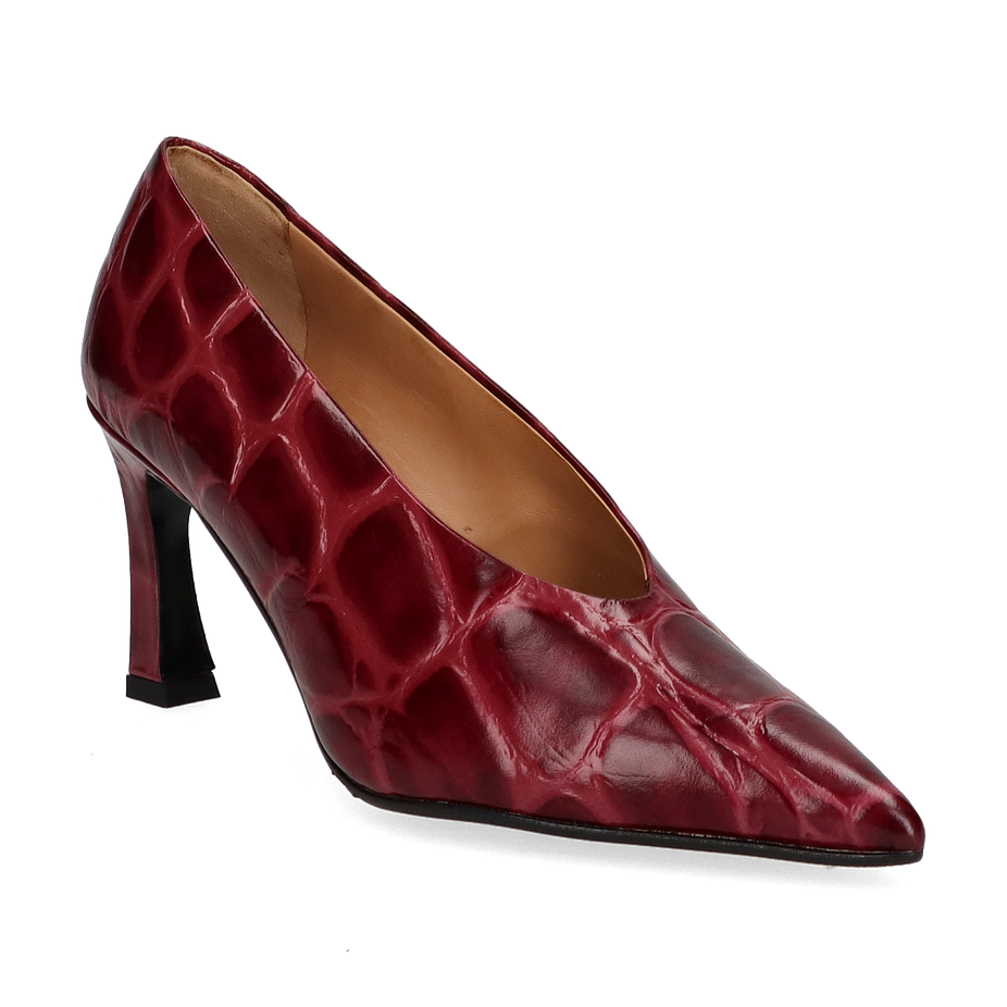 Die Phillip Hardy Klassische Pumps in elegantem Bordeaux präsentieren sich mit einem stilvollen, krokodillederähnlichen Design, das jedem Outfit eine luxuriöse Note verleiht. Der spitz zulaufende Schuh und der 7 cm hohe Absatz sorgen für eine feminine Silhouette, die sowohl im Büro als auch bei besonderen Anlässen überzeugt. Die raffinierte Farbgebung und das exquisite Muster machen diesen Schuh zu einem unverzichtbaren Accessoire für Damen, die Wert auf Stil und Eleganz legen.