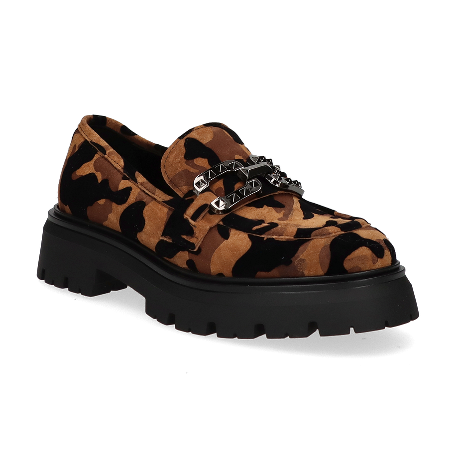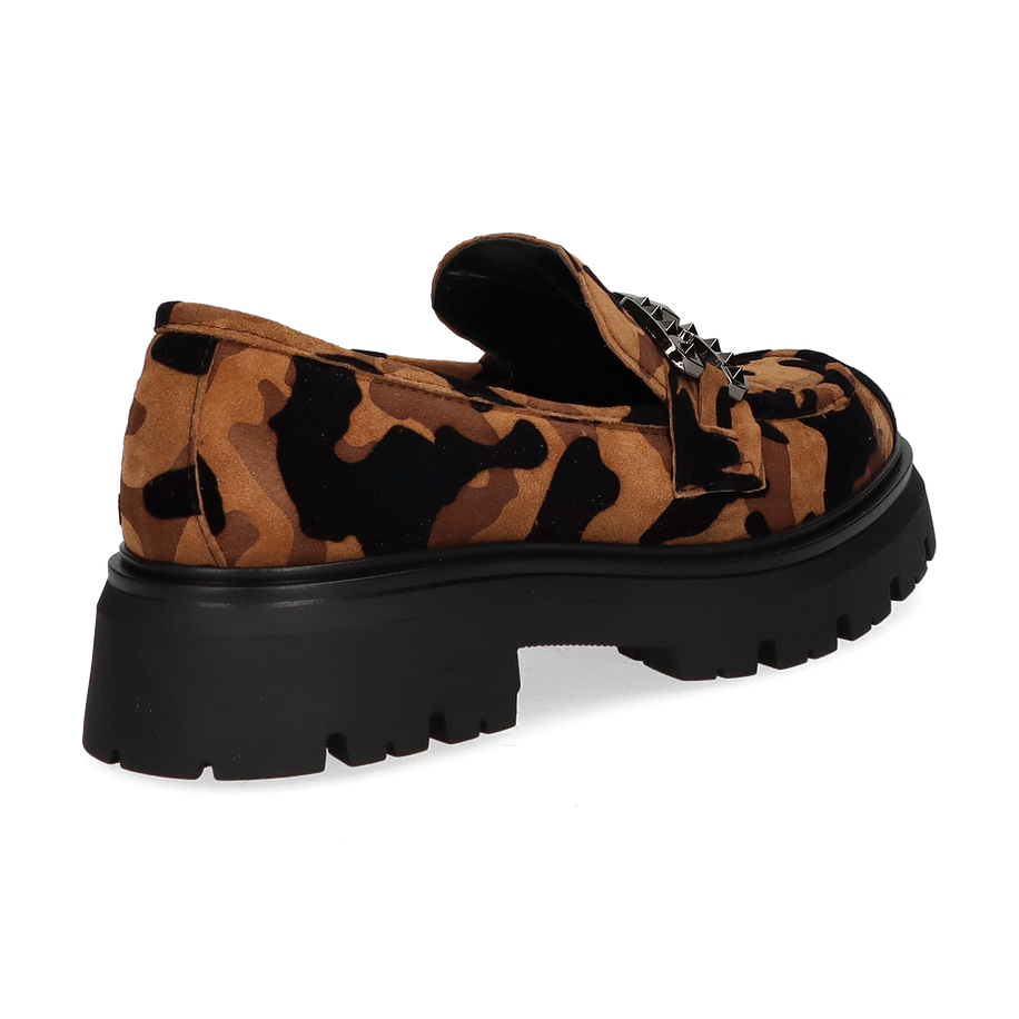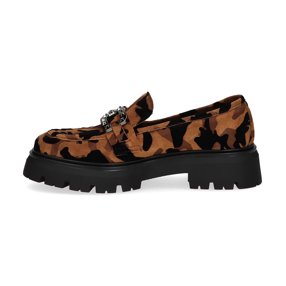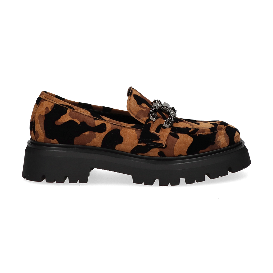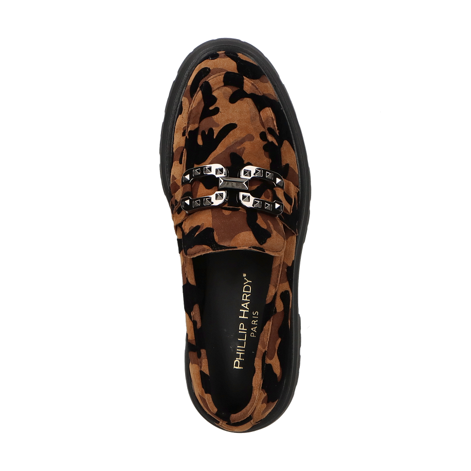 Entdecken Sie den eleganten Slipper RAMONA von Phillip Hardy, der mit seinem auffälligen Design in Braun sofort ins Auge fällt. Dieser Slipper für Damen kombiniert einen modernen Look mit einem Hauch von Extravaganz durch das markante Muster und die stilvollen Details. Die robuste Sohle und die dekorativen Elemente auf dem Spann verleihen dem Schuh einen einzigartigen Charakter, während die hochwertige Verarbeitung für einen luxuriösen Auftritt sorgt.