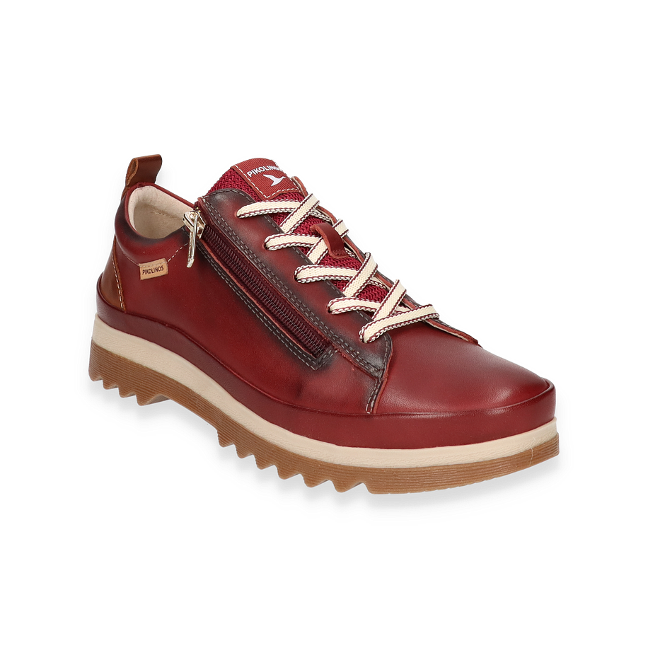 Der Pikolinos VIGO Schnürschuh für Damen präsentiert sich in einem eleganten Bordeaux-Ton, der jedem Outfit eine stilvolle Note verleiht. Das Obermaterial aus hochwertigem Leder sorgt für eine luxuriöse Optik und Langlebigkeit. Die seitlichen Reißverschlüsse und die kontrastierenden Schnürsenkel verleihen dem Schuh einen modernen Touch, während die dezente Markenprägung das Design abrundet. Die wellenförmige Gummisohle bietet nicht nur einen modischen Akzent, sondern auch hervorragenden Halt und Stabilität.