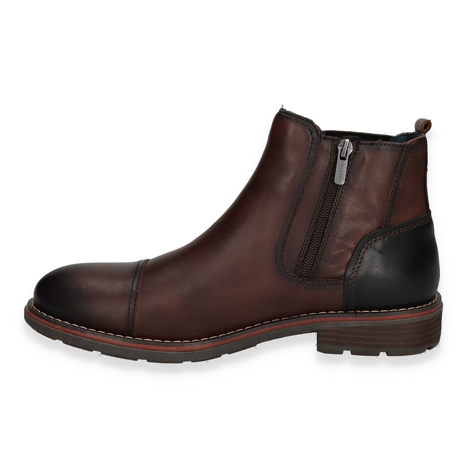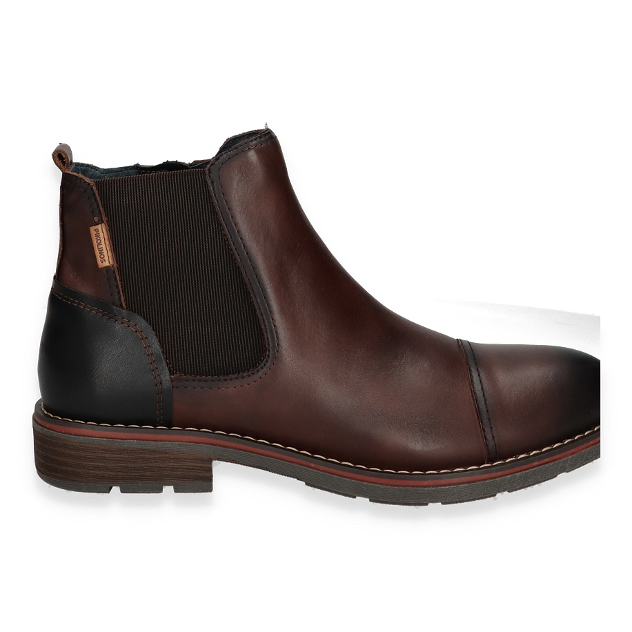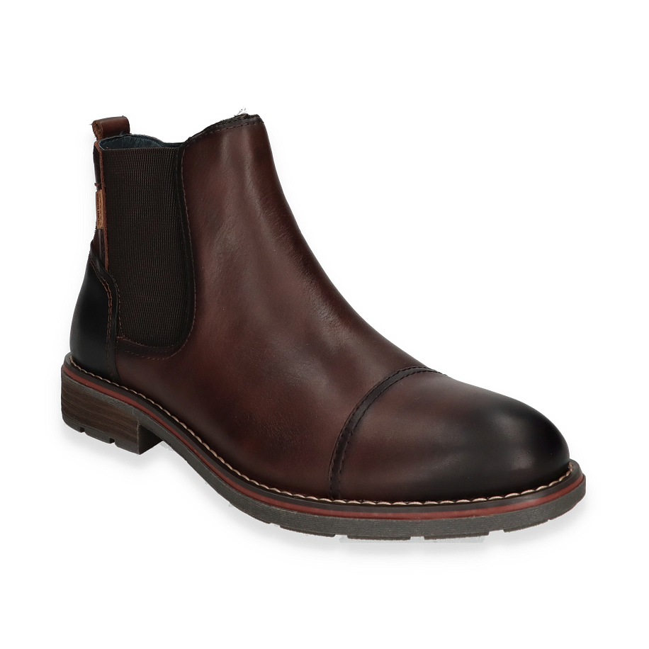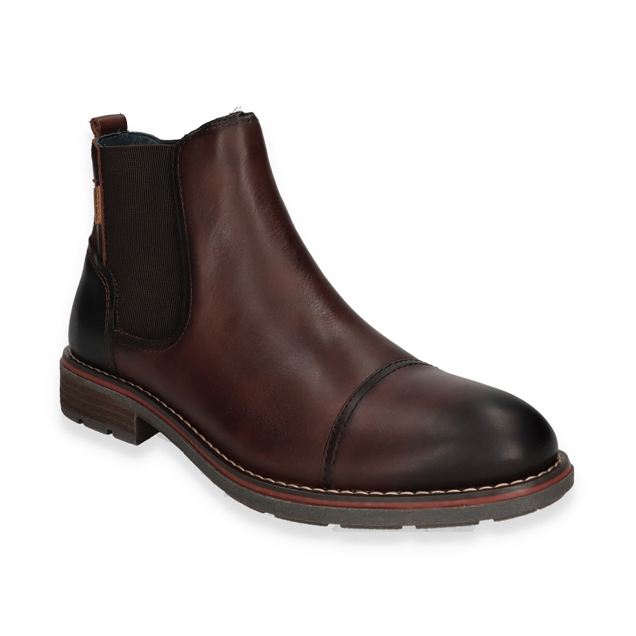 Die Pikolinos YORK Stiefeletten für Herren präsentieren sich in einem eleganten Dunkelbraun, das jedem Outfit eine zeitlose Note verleiht. Der Schuh besticht durch sein hochwertiges Leder/Textil-Obermaterial, das in Kombination mit dem raffinierten Design einen stilvollen Auftritt garantiert. Die sorgfältige Verarbeitung und die dezente Nahtführung unterstreichen die Exklusivität dieses Modells. Die elastischen Seiteneinsätze sorgen für eine optimale Passform und erleichtern das An- und Ausziehen.