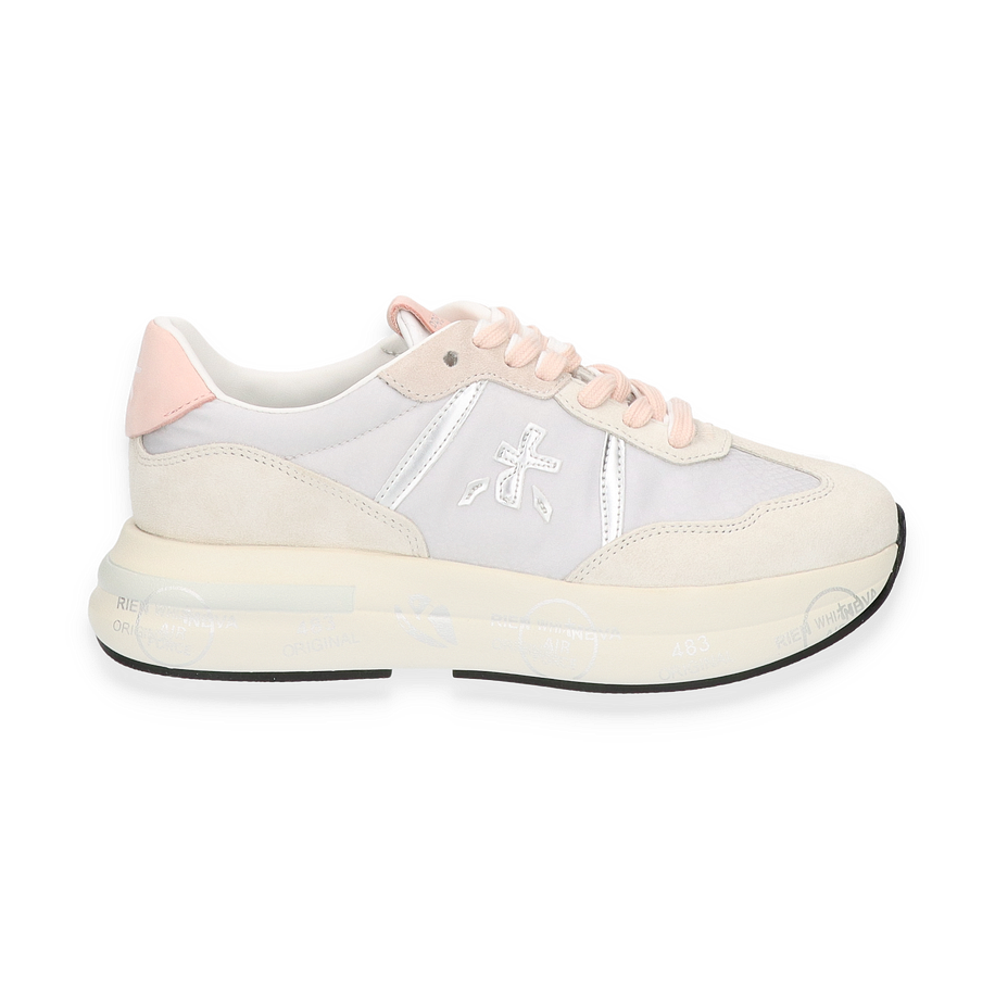 Der Premiata Sneaker CASSIE für Damen präsentiert sich in einem stilvollen grau/beige Design, das sowohl Eleganz als auch Lässigkeit verkörpert. Die Kombination aus Leder und Textil im Obermaterial verleiht dem Schuh eine hochwertige Optik und sorgt für Langlebigkeit. Die subtilen Details und die markante Sohle mit einem leichten Plateau verleihen dem Sneaker einen modernen Touch, während die weichen Pastelltöne für einen femininen Akzent sorgen.
