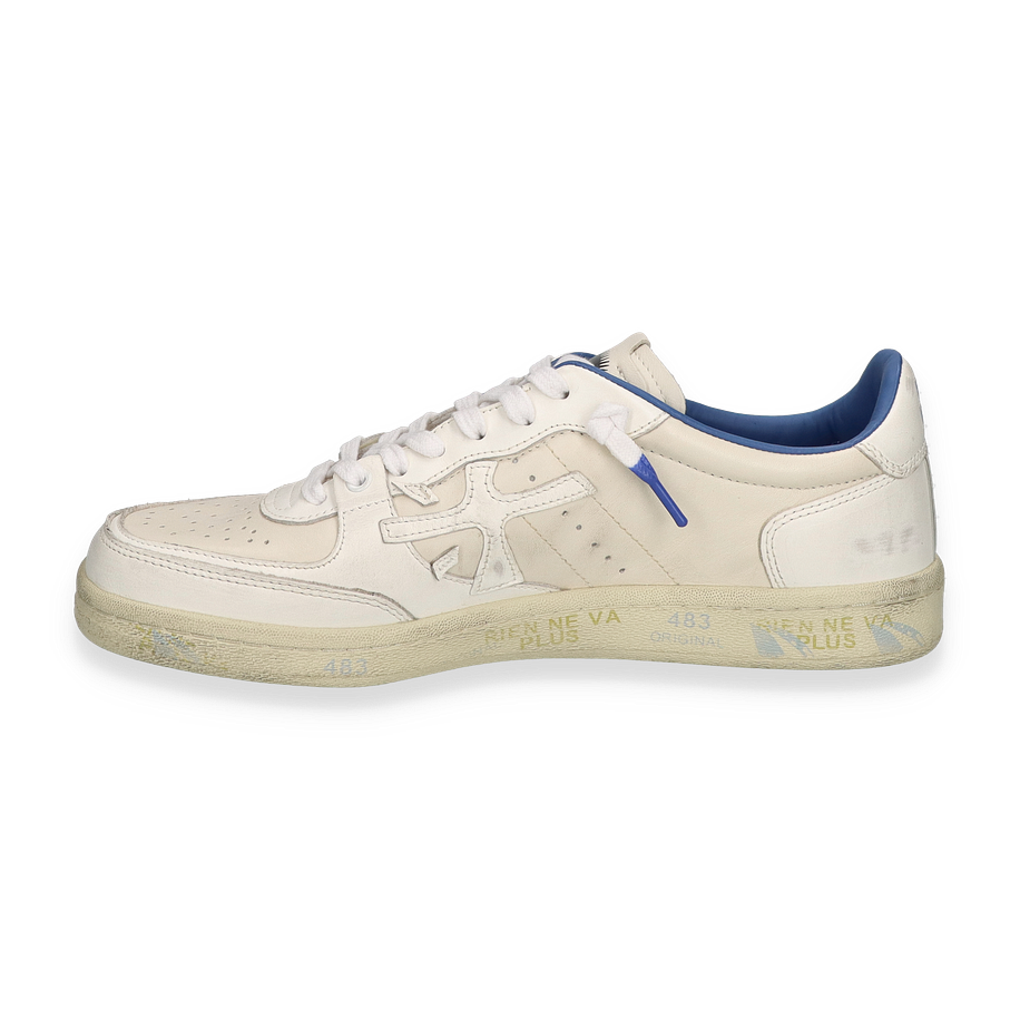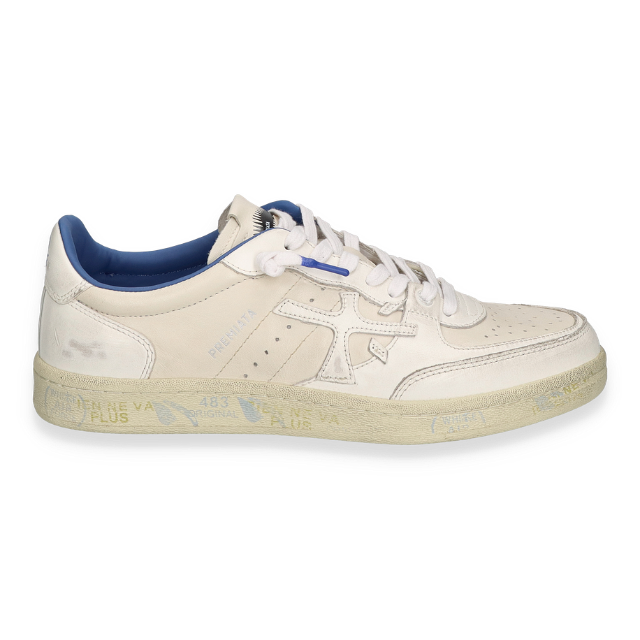 Preis inkl. MwSt.Der Premiata CLAY Sneaker für Herren besticht durch sein elegantes Design in klassischem Weiß. Das Obermaterial aus hochwertigem Leder verleiht dem Schuh eine edle Optik und sorgt für Langlebigkeit. Die feinen Details und die dezente Farbgebung machen diesen Sneaker zu einem vielseitigen Begleiter für verschiedene Anlässe. Die blaue Innenauskleidung setzt einen stilvollen Akzent und ergänzt das Gesamtbild harmonisch.