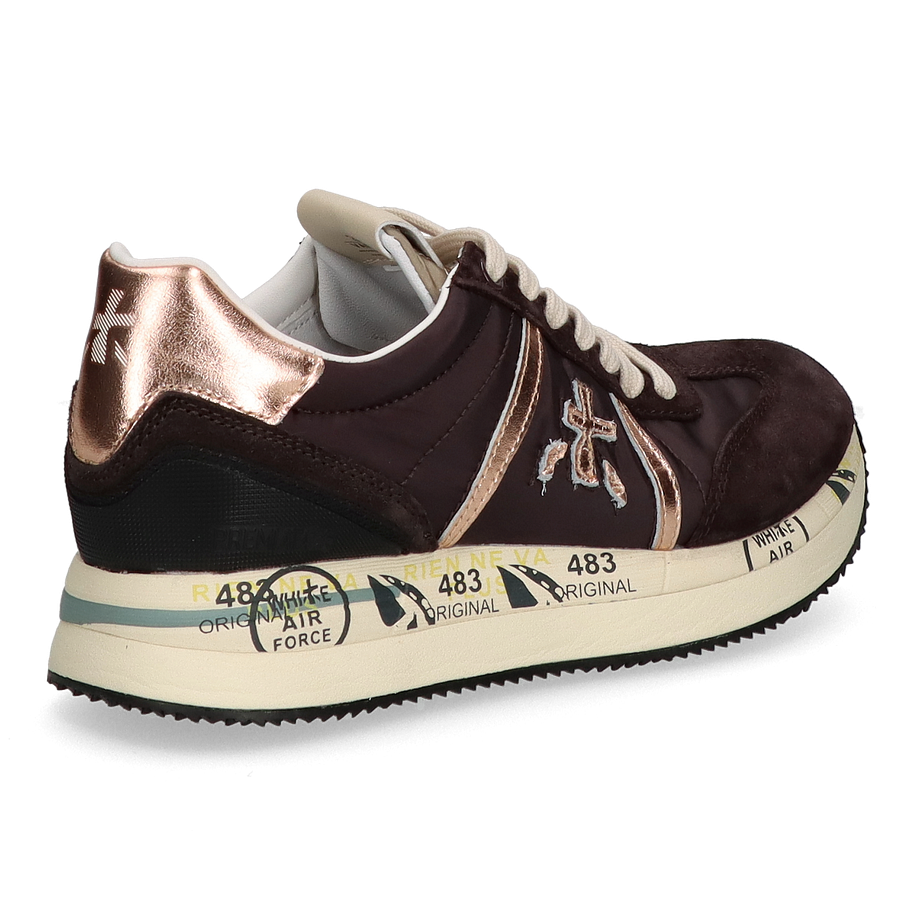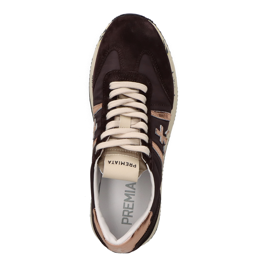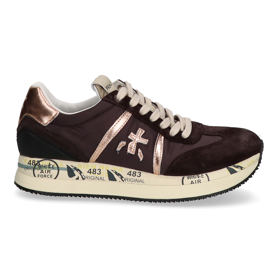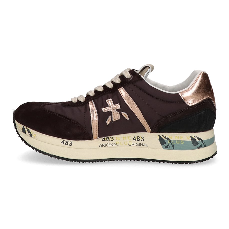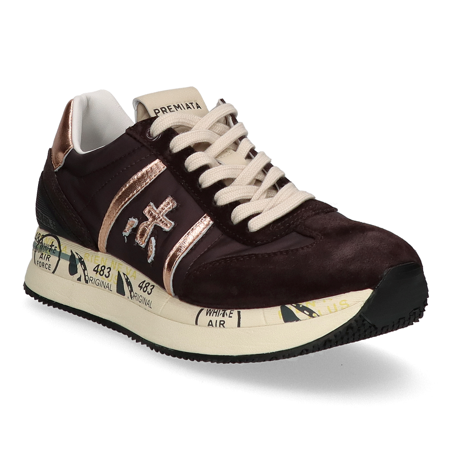 Preis inkl. MwSt.Entdecken Sie die stilvollen Premiata CONNY Schnürschuhe für Damen in elegantem Dunkelbraun. Diese Schuhe kombinieren hochwertigen Komfort mit einem modernen Design. Das Obermaterial aus Leder, Textil und sonstigem Material sorgt für eine langlebige und ansprechende Optik. Die roségoldenen Akzente verleihen dem Schuh einen Hauch von Luxus und machen ihn zu einem echten Hingucker. Das Innenmaterial besteht aus Leder und sonstigem Material, was für ein angenehmes Tragegefühl sorgt. Die 4 cm hohe Ferse bietet eine dezente Erhöhung, während die Gummisohle für optimalen Halt und Stabilität sorgt. Die Premiata CONNY Schnürschuhe sind die perfekte Wahl für modebewusste Damen, die Wert auf Qualität und Stil legen.