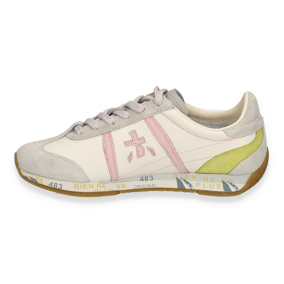Der Sneaker JACKYX von Premiata in Beige/Bunt ist ein stilvoller Begleiter für Damen, der durch sein einzigartiges Design besticht. Die harmonische Kombination aus sanften Beige- und Pastelltönen verleiht dem Schuh eine elegante und zugleich moderne Ausstrahlung. Die kontrastierenden Details und das markante Logo an der Seite unterstreichen den individuellen Charakter dieses Sneakers. Der dezente Absatz von 2,0 cm sorgt für eine angenehme Höhe, die sowohl Komfort als auch Stil bietet.