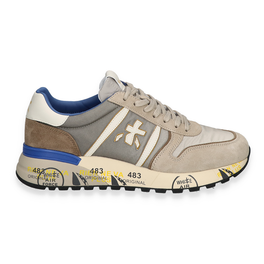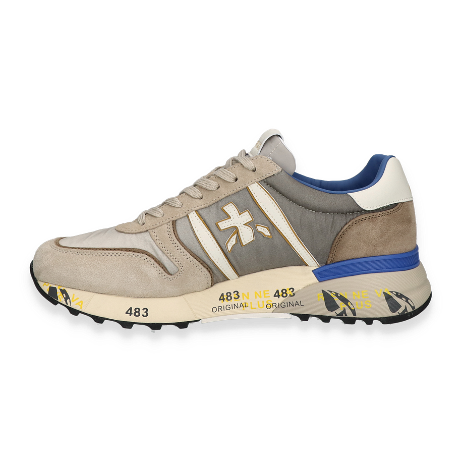 Der Sneaker LANDER von Premiata präsentiert sich in einem stilvollen Grau/Bunt-Design, das durch seine vielseitigen Farbakzente besticht. Die Kombination aus Leder, Textil und sonstigem Material verleiht dem Schuh eine moderne und dynamische Optik. Die sorgfältig gearbeiteten Details und das markante Logo auf der Seite unterstreichen den hochwertigen Charakter dieses Sneakers. Mit einer Fersenhöhe von 4,5 cm bietet er eine angenehme Erhöhung, die sowohl Komfort als auch Stil vereint.