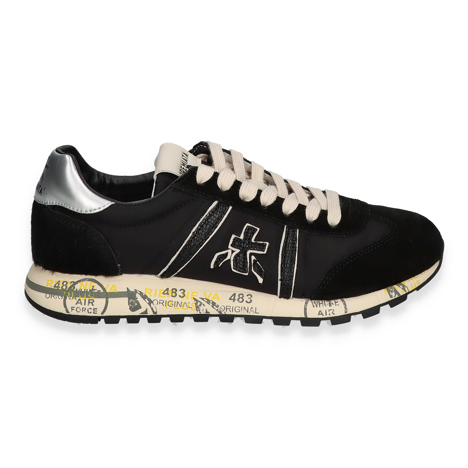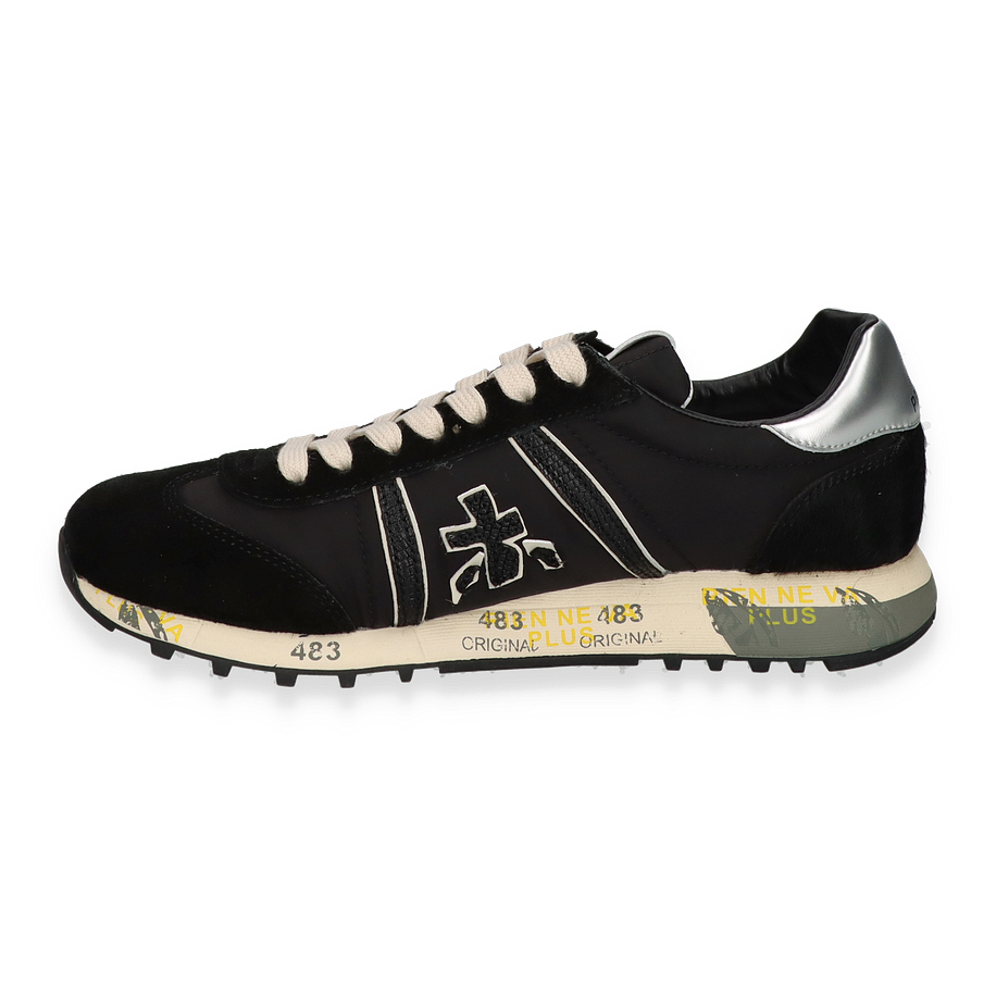 Der Premiata Sneaker LUCY für Damen präsentiert sich in einem eleganten Schwarz, das durch die Kombination aus Leder, Textil und sonstigem Material eine stilvolle und moderne Ästhetik erhält. Die kontrastierenden weißen Schnürsenkel und die markante Sohle mit grafischen Elementen verleihen dem Schuh einen einzigartigen Look. Die hochwertige Verarbeitung und das durchdachte Design machen diesen Sneaker zu einem vielseitigen Begleiter für den Alltag.