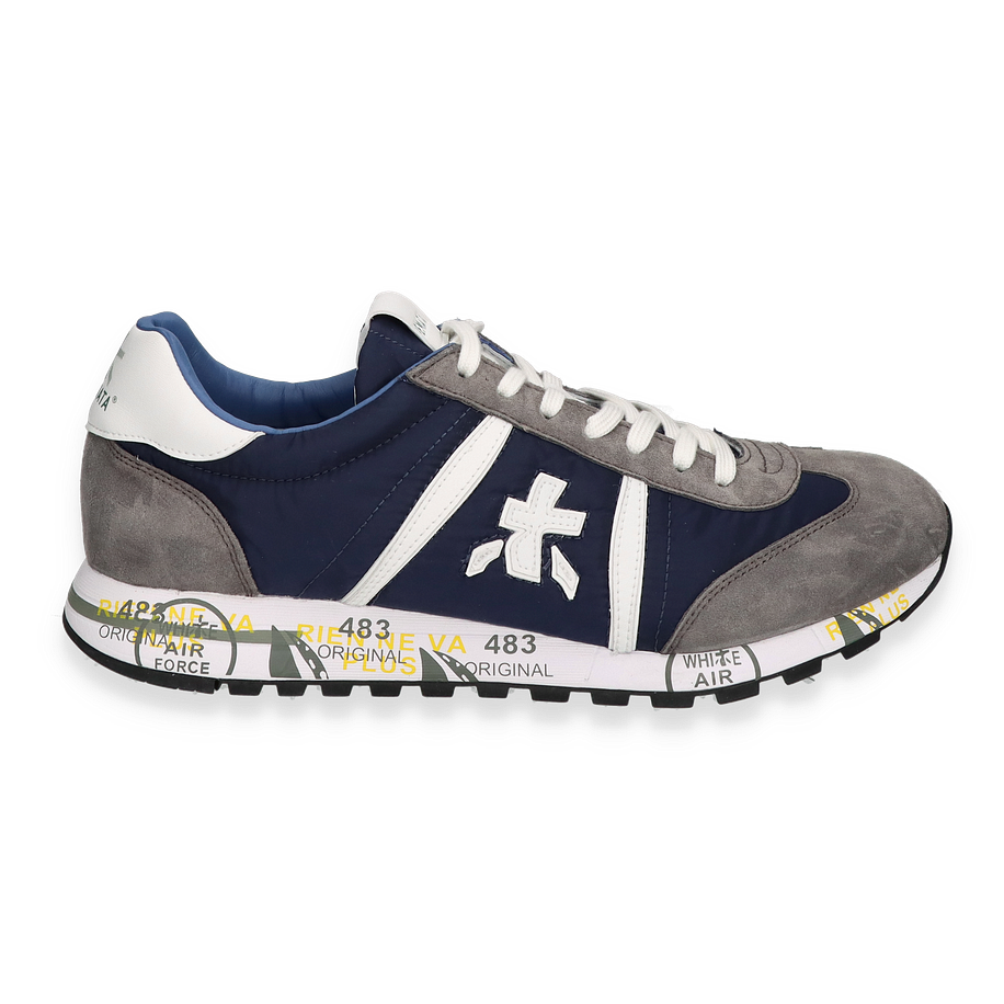 Der Premiata Sneaker LUCY für Herren präsentiert sich in einem stilvollen Blau/Bunt-Design, das durch seine moderne Ästhetik besticht. Die Kombination aus Leder und Textil im Obermaterial verleiht dem Schuh eine elegante und zugleich sportliche Note. Die kontrastierenden weißen Schnürsenkel und das markante Logo-Detail an der Seite unterstreichen den dynamischen Look. Mit einer Absatzhöhe von 3 cm bietet der Sneaker nicht nur Stil, sondern auch Komfort für den Alltag.