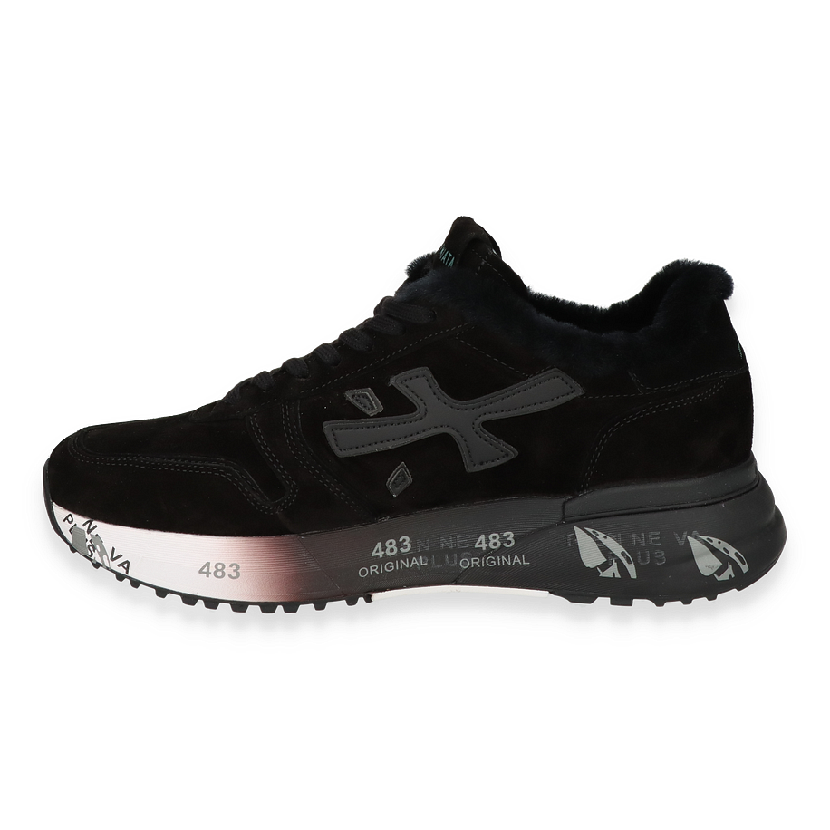 Der Premiata Sneaker MICK für Herren präsentiert sich in einem eleganten Schwarz, das durch seine raffinierte Kombination aus Leder, Textil und sonstigen Materialien besticht. Die markante Silhouette wird durch das subtile Logo-Design und die kontrastierenden Details an der Sohle unterstrichen, die dem Schuh einen modernen und urbanen Look verleihen. Die hochwertige Verarbeitung und das stilvolle Design machen diesen Sneaker zu einem vielseitigen Begleiter für verschiedene Anlässe.