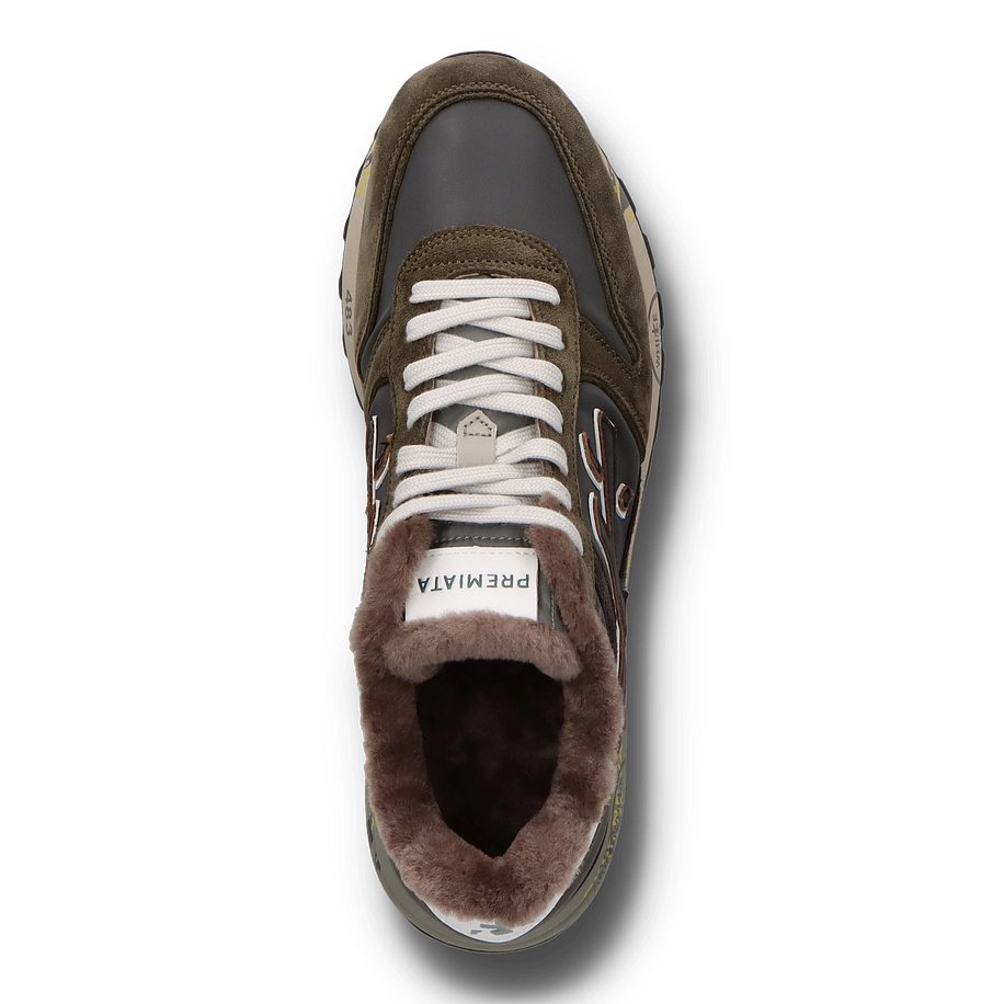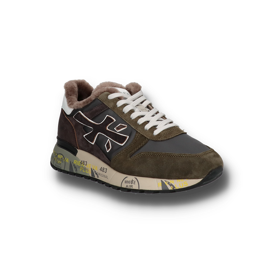 Die olivgrünen Premiata MICK Sneaker für Herren sind ein stylischer und funktionaler Sneaker, der sich perfekt für den Alltag eignet. Sie sind eine gute Wahl für Männer, die auf der Suche nach einem Paar Schuhe sind, die sowohl gut aussehen als auch bequem zu tragen sind. Dank der flauschigen Fütterung aus echtem Lammfell sind die Herrenschuhe nicht nur optisch ein Volltreffer, sondern garantieren auch warme Füße an besonders kalten Wintertagen.
