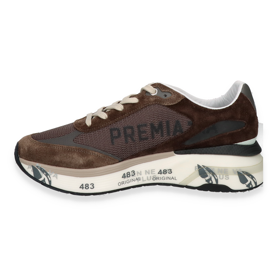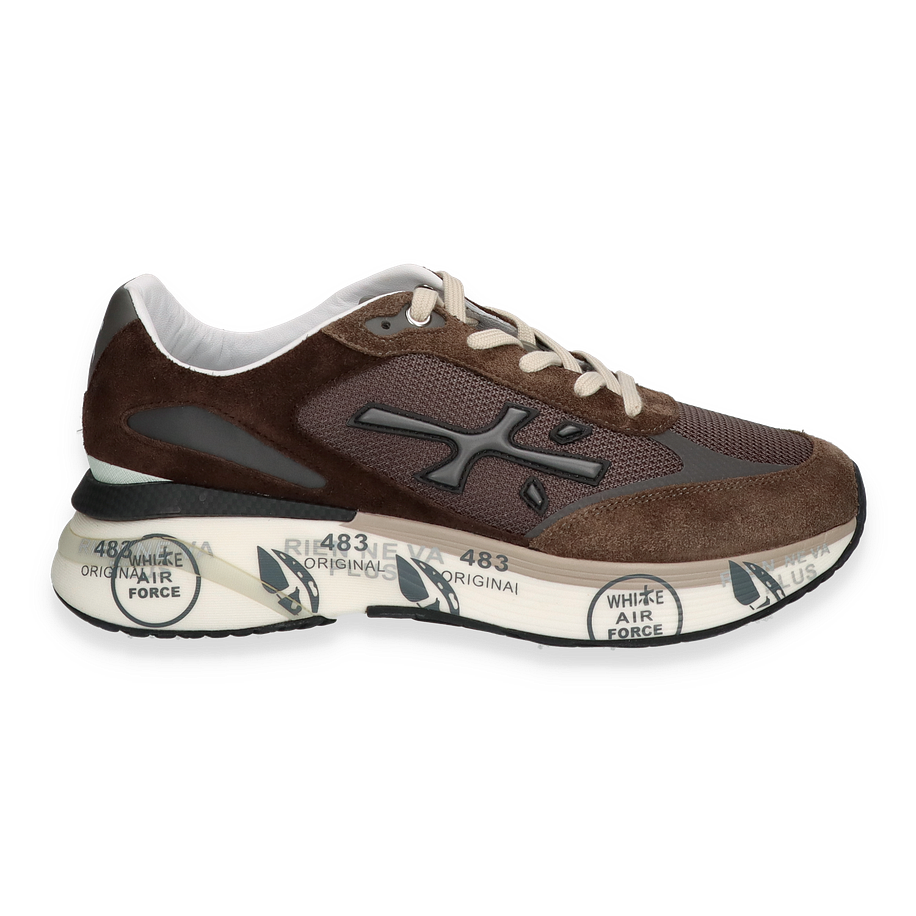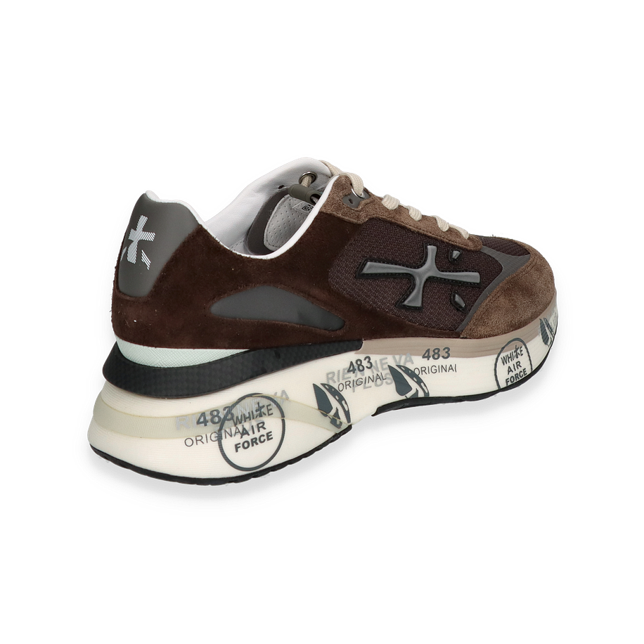 Der MOERUN Sneaker von Premiata in Dunkelbraun vereint stilvolle Eleganz mit sportlichem Design. Die Kombination aus hochwertigem Leder und Textil im Obermaterial verleiht dem Schuh eine edle Optik, während die kontrastierenden hellen Schnürsenkel und die markante Sohle für einen modernen Akzent sorgen. Die sorgfältig gestalteten Details und die harmonische Farbgebung machen diesen Sneaker zu einem vielseitigen Begleiter für Herren, der sowohl im Alltag als auch zu besonderen Anlässen überzeugt.