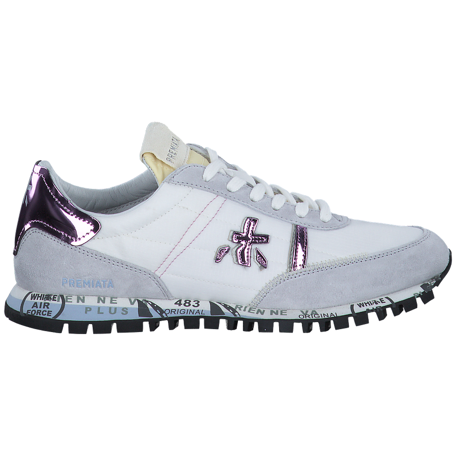 Entdecken Sie den Premiata SEAND Sneaker für Damen in strahlendem Weiß. Dieser Schuh besticht durch seine hochwertige Verarbeitung aus Textil, Leder und sonstigen Materialien. Das Innenfutter und die Innensohle sind aus weichem Leder gefertigt, was für hohen Tragekomfort sorgt. Die Sohle aus Gummi bietet ausgezeichnete Rutschfestigkeit. Mit einer Absatzhöhe von 2,5 cm verleiht dieser Sneaker Ihnen eine dezente Erhöhung. Ein besonderes Highlight sind die glänzenden Applikationen, die dem Schuh einen einzigartigen und modischen Look verleihen. Mit dem SEAND Sneaker von Premiata setzen Sie ein modisches Statement.