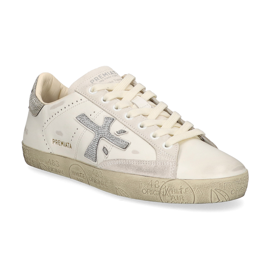 Entdecken Sie den STEVEN Sneaker von Premiata, ein elegantes Modell für Damen, das Stil und Komfort vereint. Der Sneaker präsentiert sich in einem klassischen Weiß, das durch subtile Details und das markante Premiata-Logo aufgewertet wird. Die hochwertige Verarbeitung und das zeitlose Design machen diesen Schuh zu einem vielseitigen Begleiter für jede Gelegenheit. Der dezente 2 cm hohe Absatz sorgt für eine angenehme Erhöhung, während die Lederoberfläche dem Schuh eine luxuriöse Note verleiht.