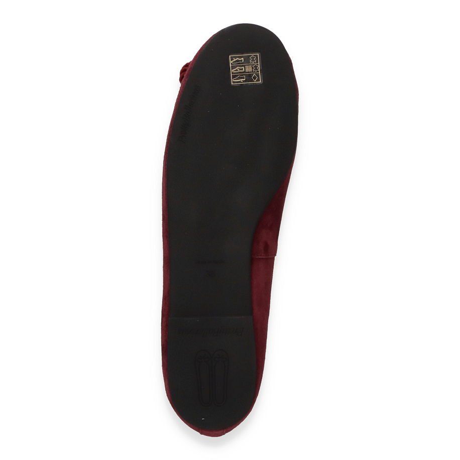 Die "ANGELIS RADICE" Ballerinas von PRETTY BALLERINAS präsentieren sich in einem eleganten Bordeaux-Ton, der jedem Outfit eine raffinierte Note verleiht. Der klassische Schnitt dieser Ballerinas wird durch eine dezente Schleife auf der Vorderseite akzentuiert, die dem Schuh eine feminine Ausstrahlung verleiht. Die flache Silhouette und der niedrige Absatz von 1 cm sorgen für einen zeitlosen Look, der sowohl für den Alltag als auch für besondere Anlässe geeignet ist.