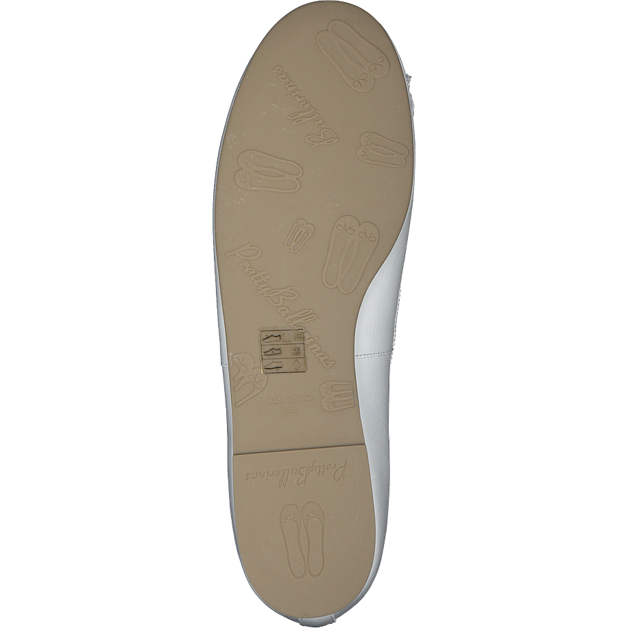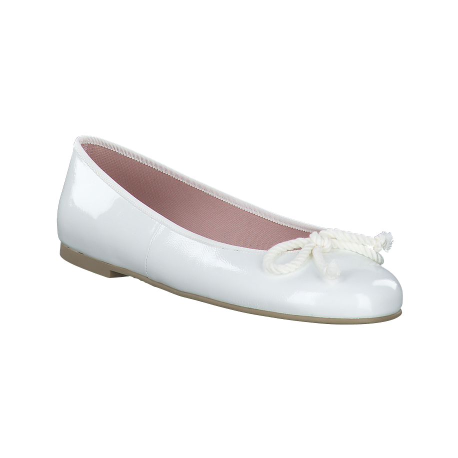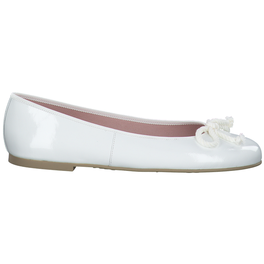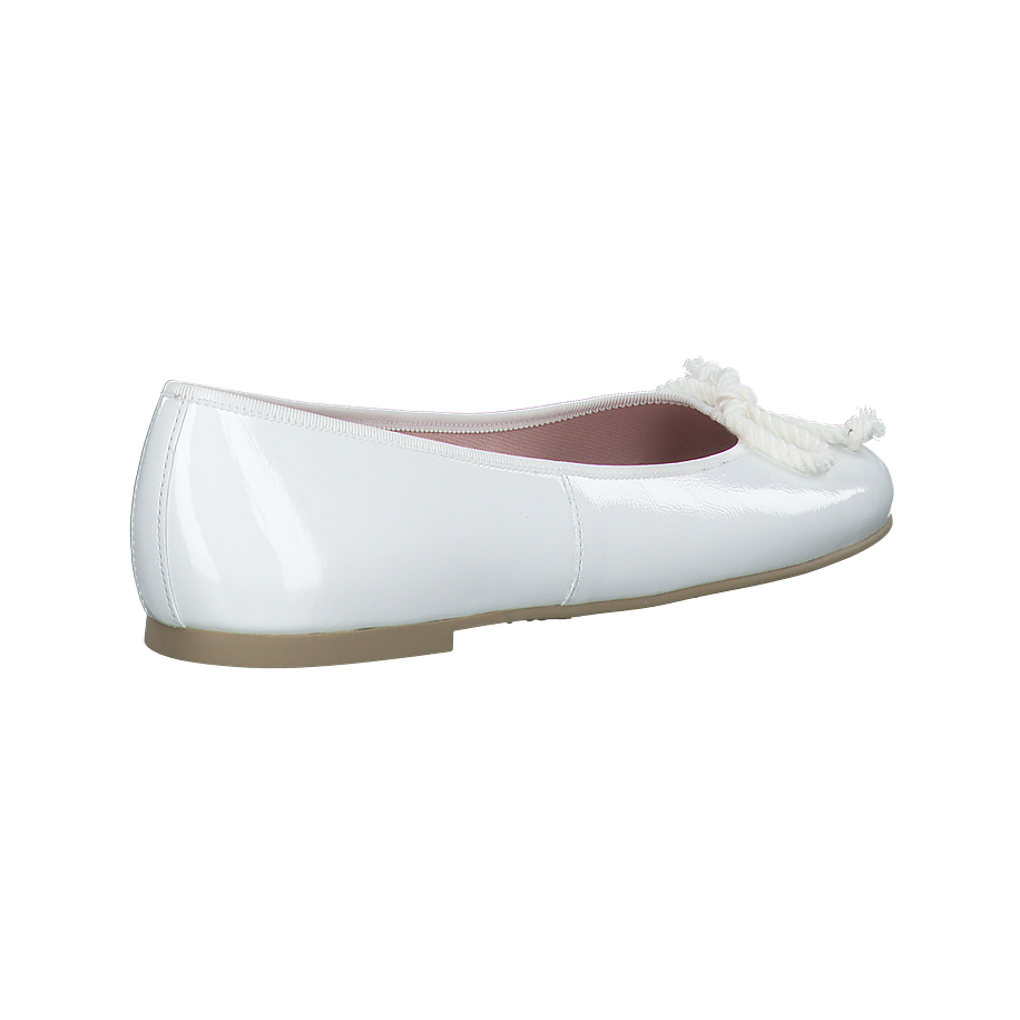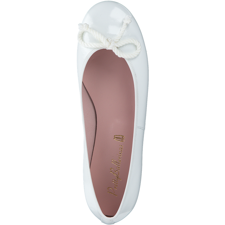 Ballerinas sind in der neuen Saison unverzichtbar. Dieses Modell von Pretty Ballerinas in weiß lässt sich zu vielen sommerlichen Outfits kombinieren, ist bequem und und gefertigt aus weichem, glänzendem Leder mit einer Kordel auf der Schuhspitze.