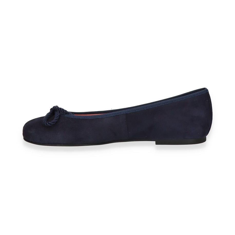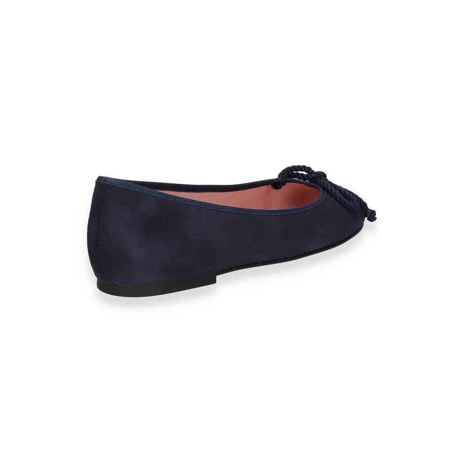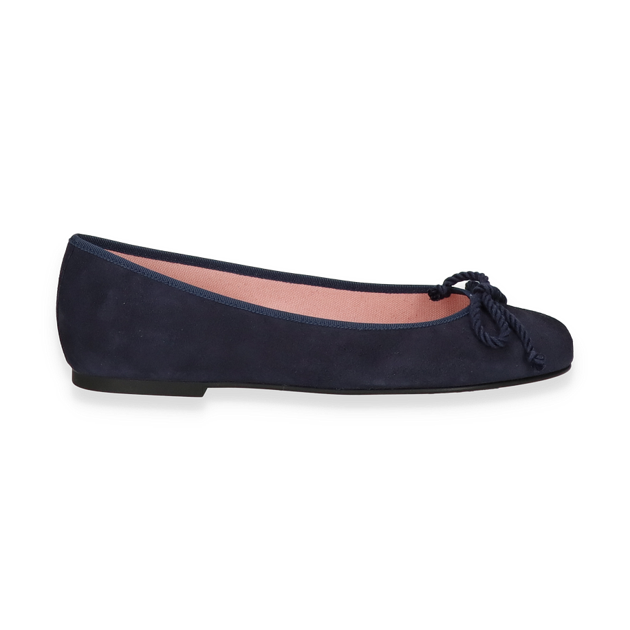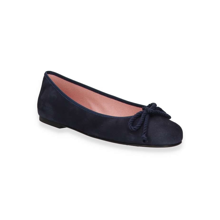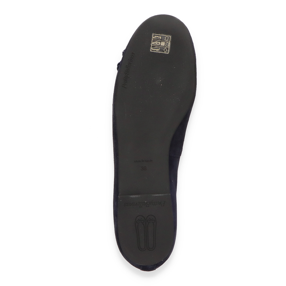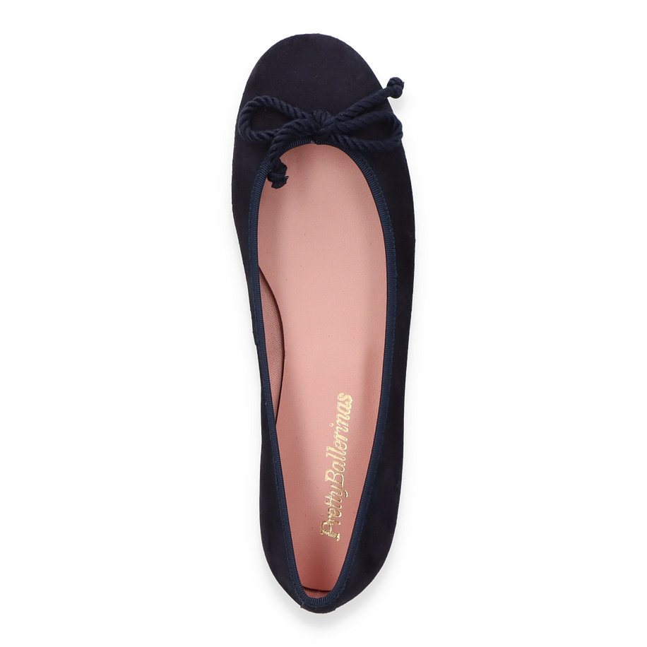 Flache Ballerinas von Pretty Ballerina sind für alle Frauen mit Stil. Dieses Exemplar hat eine Halt bietende Gummisohle und wurde aus feinstem Leder gefertigt. Das edle, dunkelblaue Leder wird von der gleichfarbigen Paspell ergänzt und auch die Schleife passt perfekt in das Bild.