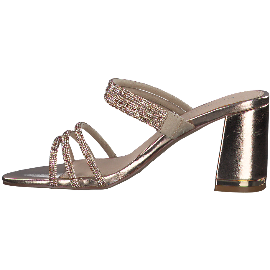 Schlüpfen Sie hinein in diese atemberaubend schönen Ralph Harrison Pantoletten für Damen und kreieren Sie einzigartige Looks im Alltag ebenso wie zu besonderen Anlässen! Die stylishen Damenschuhe sind aus einem feinen Textil gefertigt, welches sich in Form von zahlreichen schmalen Riemchen schmeichelhaft im Ihre Füße legt und einen sicheren Halt bietet. Die goldene Farbe des Obermaterials wird durch feine Schimmerpartikel zusätzlich in Szene gesetzt, sodass die goldfarbenen Ralph Harrison Pantoletten einen glamourösen Charme versprühen. Auf den mittelhohen robusten Blockabsätzen fühlen Sie sich rundum wohl!