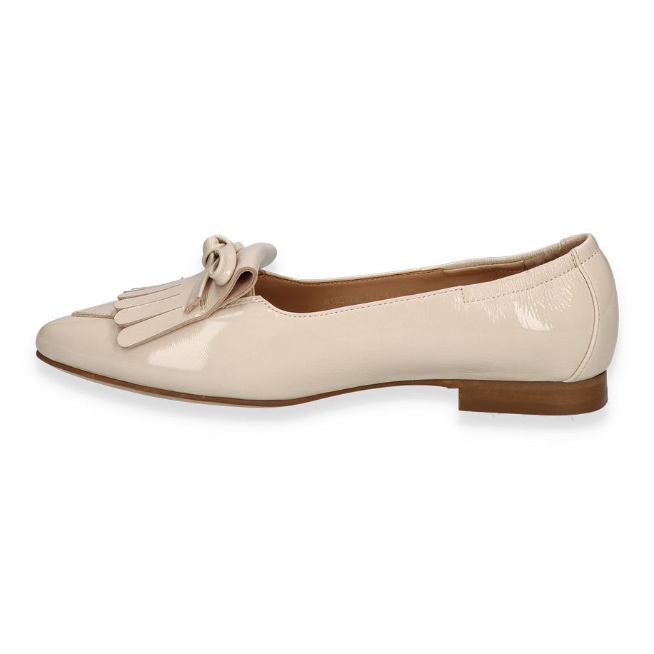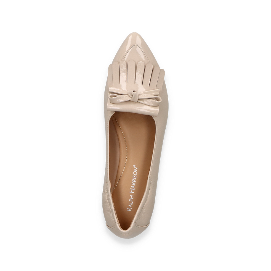 Preis inkl. MwSt.Der Ralph Harrison Slipper "JEANINE" für Damen präsentiert sich in einem eleganten Beige, das jedem Outfit eine subtile Raffinesse verleiht. Der Schuh besticht durch sein hochwertiges Leder-Obermaterial, das mit einer stilvollen Schleifen- und Fransenapplikation verziert ist. Der dezente Absatz von 1,5 cm sorgt für einen angenehmen Tragekomfort, während die spitz zulaufende Form dem Design eine moderne Note verleiht.