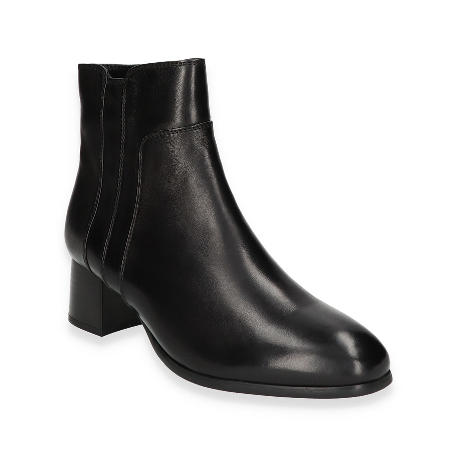 Preis inkl. MwSt.Die Ralph Harrison Klassische Stiefeletten für Damen präsentieren sich in einem eleganten Schwarz, das zeitlose Raffinesse ausstrahlt. Der glatte Leder-Obermaterial verleiht diesen Stiefeletten eine luxuriöse Optik, während der dezente Absatz von 5 cm Höhe eine feminine Silhouette unterstreicht. Die sorgfältige Verarbeitung und das schlichte Design machen diese Stiefeletten zu einem vielseitigen Begleiter für verschiedene Anlässe.
