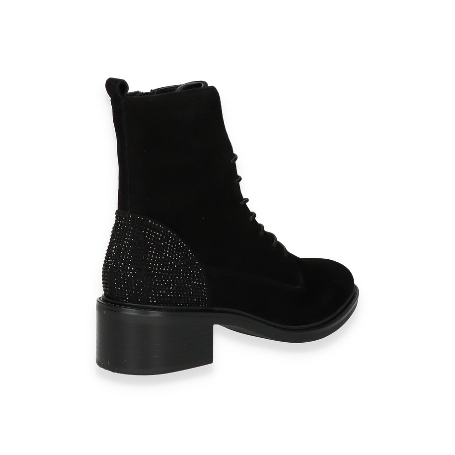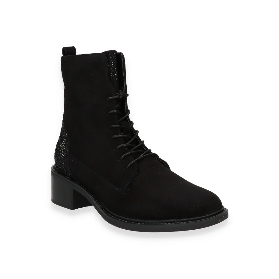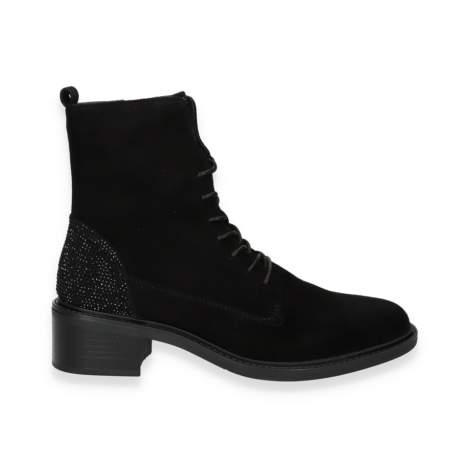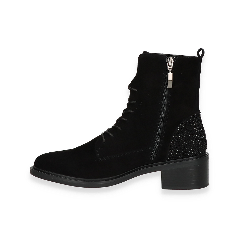 Die Ralph Harrison ETNA Klassische Stiefeletten für Damen präsentieren sich in einem eleganten Schwarz und sind ein echter Hingucker. Der Schuh besticht durch seine hochwertige Verarbeitung und die stilvollen Glitzer-Steine an der Ferse, die ihm eine besondere Note verleihen. Der seitliche Reißverschluss und die Schnürung sorgen für eine optimale Passform und ein bequemes An- und Ausziehen. Der stabile Blockabsatz mit einer Höhe von 5 cm und das Plateau von 1 cm bieten einen angenehmen Tragekomfort. Diese Stiefeletten sind aus einer Kombination von Leder und Textil gefertigt, was ihnen eine edle Optik und Langlebigkeit verleiht. Das Innenmaterial besteht aus Textil, Leder und sonstigem Material, während die Innensohle aus Leder gefertigt ist, was für ein angenehmes Fußklima sorgt. Die Gummisohle bietet hervorragende Rutschfestigkeit und Stabilität. Perfekt für stilbewusste Damen, die Wert auf Qualität und Design legen.
