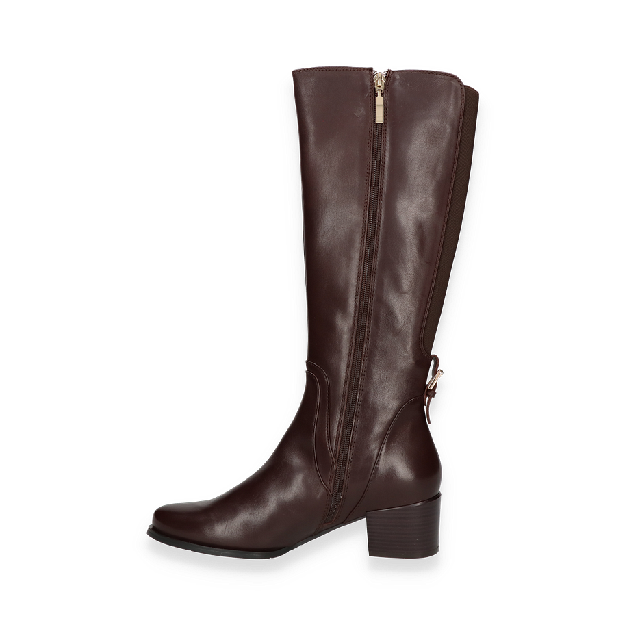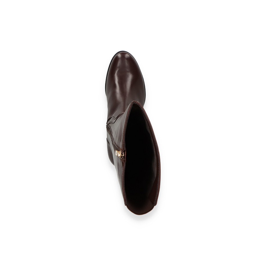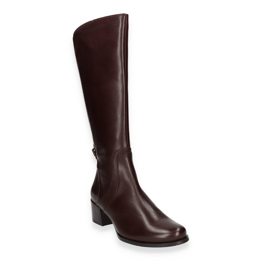 Der Ralph Harrison Stiefel "JOLENE" für Damen präsentiert sich in einem eleganten Dunkelbraun, das zeitlose Klasse und Vielseitigkeit ausstrahlt. Der Stiefel überzeugt durch sein hochwertiges Leder-Obermaterial, das nicht nur stilvoll aussieht, sondern auch langlebig ist. Mit einer Absatzhöhe von 5 cm bietet er eine angenehme Erhöhung, während die Schafthöhe von 36,5 cm und die Schaftweite von 34 cm für eine schmeichelhafte Silhouette sorgen. Die Kombination aus Leder und Textil im Innenfutter sorgt für optimalen Tragekomfort.