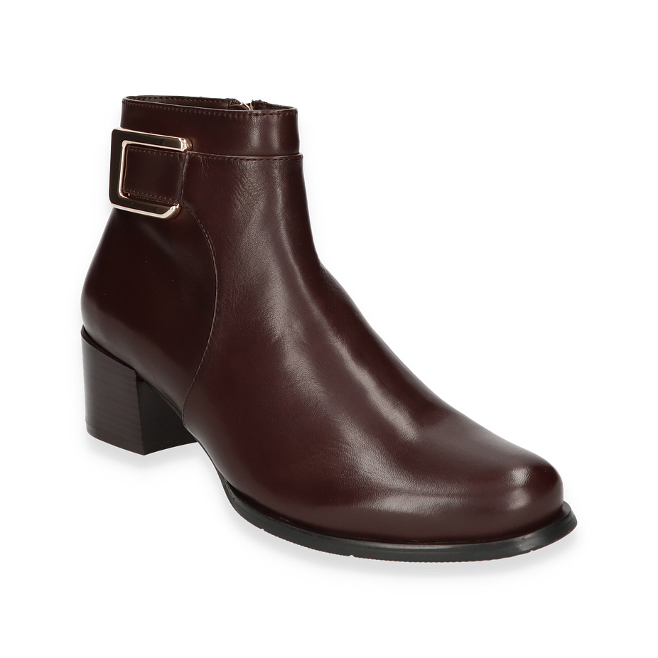 Die klassischen Stiefeletten JOLENE von RALPH HARRISON präsentieren sich in einem eleganten Dunkelbraun, das zeitlose Raffinesse ausstrahlt. Gefertigt aus hochwertigem Leder, bieten sie eine glatte, glänzende Oberfläche, die durch eine stilvolle Schnalle am Schaft akzentuiert wird. Der 5 cm hohe Absatz verleiht eine dezente Erhöhung, während der seitliche Reißverschluss ein einfaches An- und Ausziehen ermöglicht. Diese Stiefeletten für Damen sind die perfekte Ergänzung für jedes stilvolle Outfit.