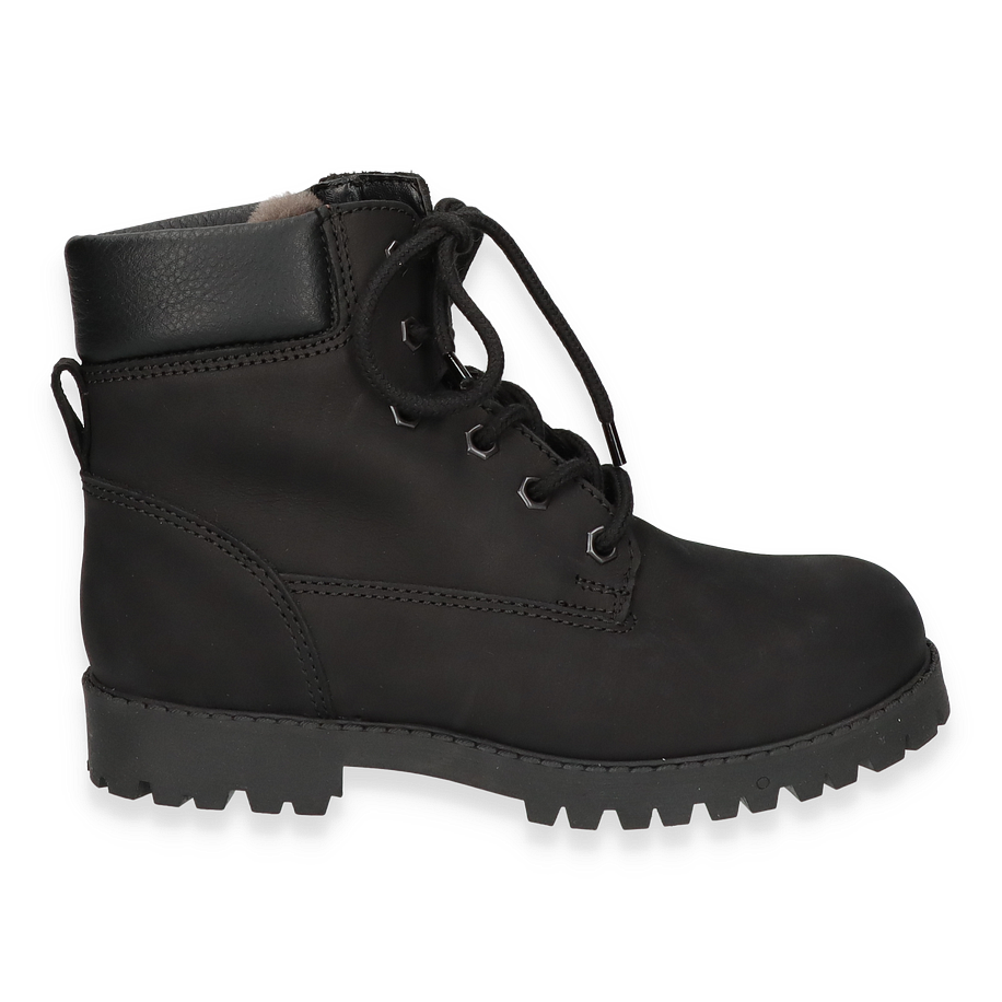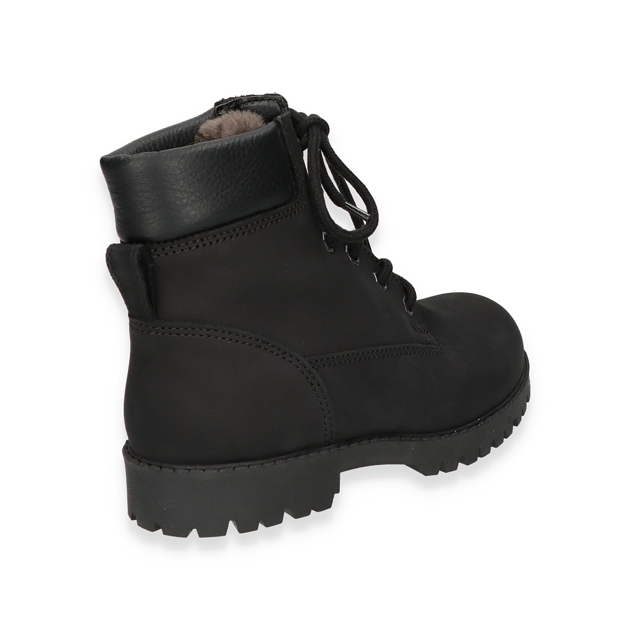 Preis inkl. MwSt.Der SABALIN Boot von Ralph Harrison präsentiert sich in einem eleganten Schwarz und ist ideal für Kinder. Das robuste Design mit einer stabilen Schnürung und einer markanten Profilsohle sorgt für sicheren Halt und Komfort. Der Schuh ist aus hochwertigem Leder gefertigt, das nicht nur langlebig, sondern auch stilvoll ist. Die warm gefütterte Innenseite bietet zusätzlichen Schutz an kalten Tagen, während der dezente Absatz von 2,5 cm dem Schuh eine moderne Silhouette verleiht.