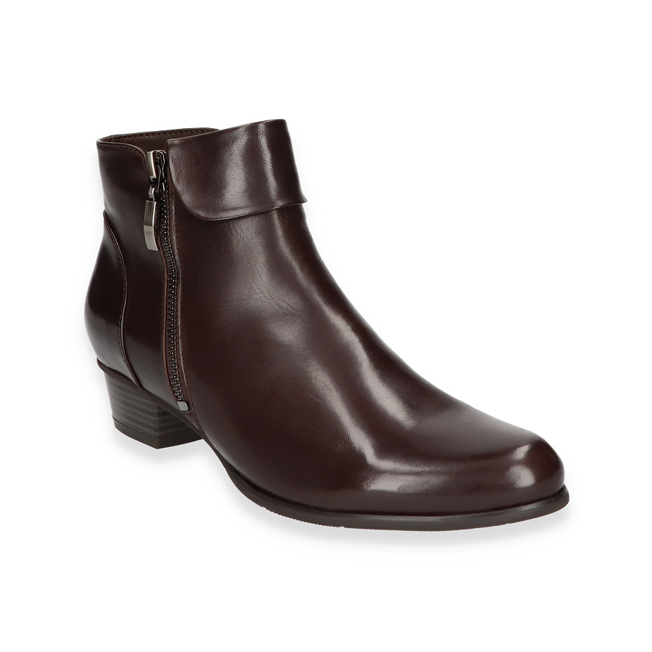 Preis inkl. MwSt.Die Ralph Harrison STEFANY Stiefelette für Damen präsentiert sich in einem eleganten Dunkelbraun, das zeitlose Klasse ausstrahlt. Der glatte Lederobermaterial verleiht dem Schuh eine edle Optik, während der seitliche Reißverschluss nicht nur funktional ist, sondern auch einen stilvollen Akzent setzt. Der 3 cm hohe Absatz sorgt für eine dezente Erhöhung und unterstreicht die feminine Silhouette der klassischen Stiefelette.