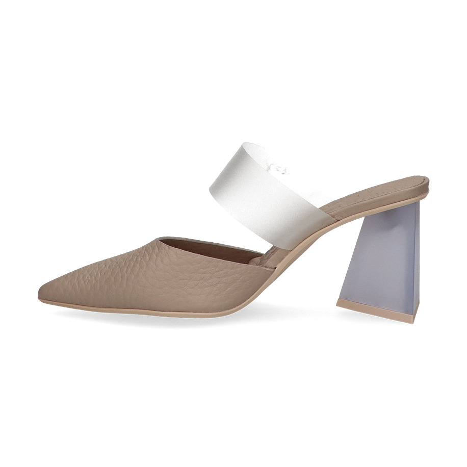 Entdecken Sie die eleganten Pantoletten für Damen von RAS in einem stilvollen Beige-Ton. Diese Schuhe bestechen durch ihr modernes Design mit einem markanten, geometrischen Absatz, der eine Höhe von 9 cm aufweist. Der raffinierte Materialmix aus Leder und sonstigem Material verleiht den Pantoletten eine besondere Note, während der breite, weiße Riemen für einen sicheren Halt sorgt. Die spitz zulaufende Form unterstreicht die feminine Silhouette und macht diese Pantoletten zu einem perfekten Begleiter für anspruchsvolle Anlässe.