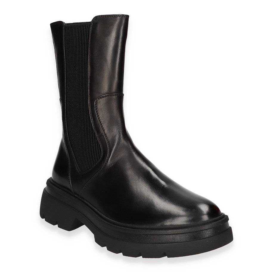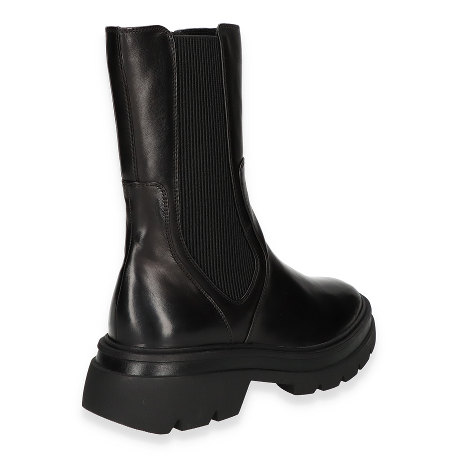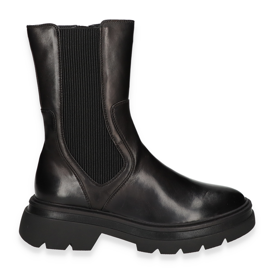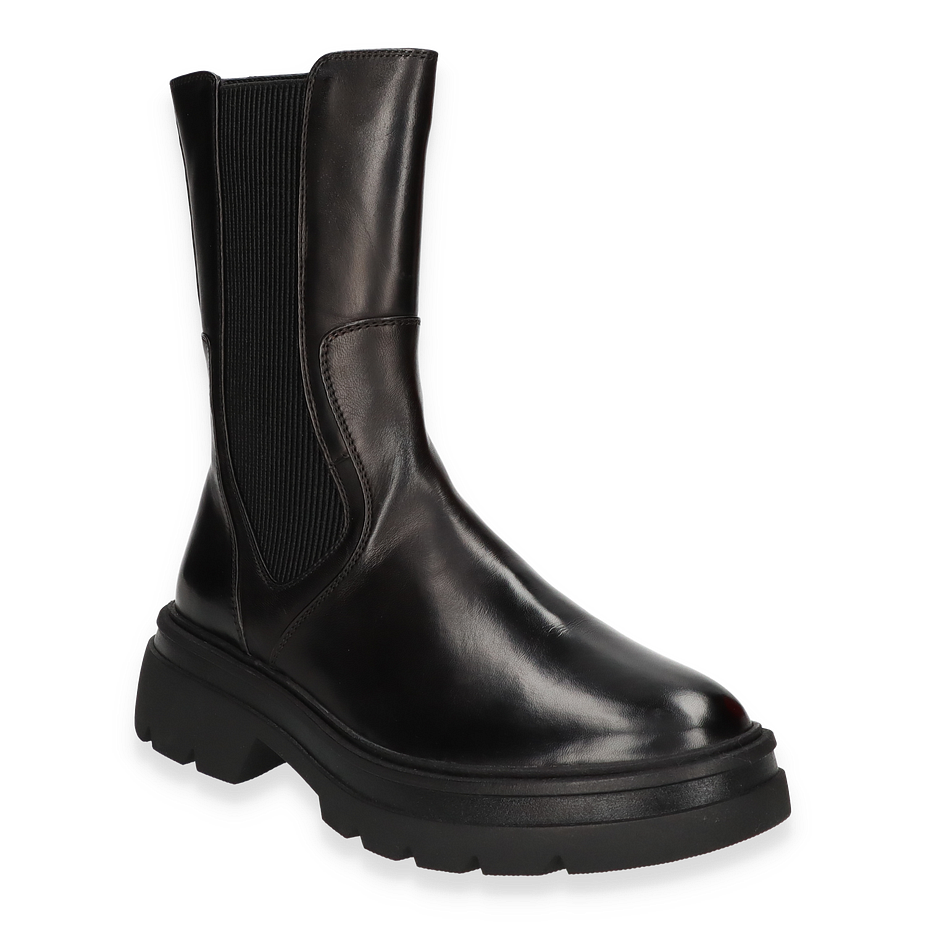 Die POLLY Boots von Regarde le Ciel präsentieren sich in elegantem Schwarz und vereinen zeitloses Design mit modernem Komfort. Der hochwertige Leder-Obermaterial sorgt für eine edle Optik und verspricht Langlebigkeit. Die robuste Gummisohle bietet optimalen Halt, während der elastische Einsatz an der Seite das An- und Ausziehen erleichtert. Mit einer Absatzhöhe von 4,5 cm und einer Plateauhöhe von 3 cm verleihen diese Stiefel für Damen jedem Outfit eine stilvolle Note.