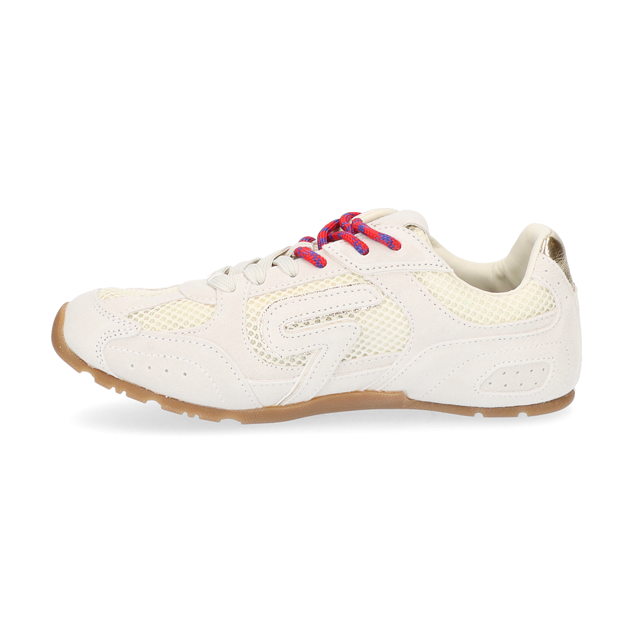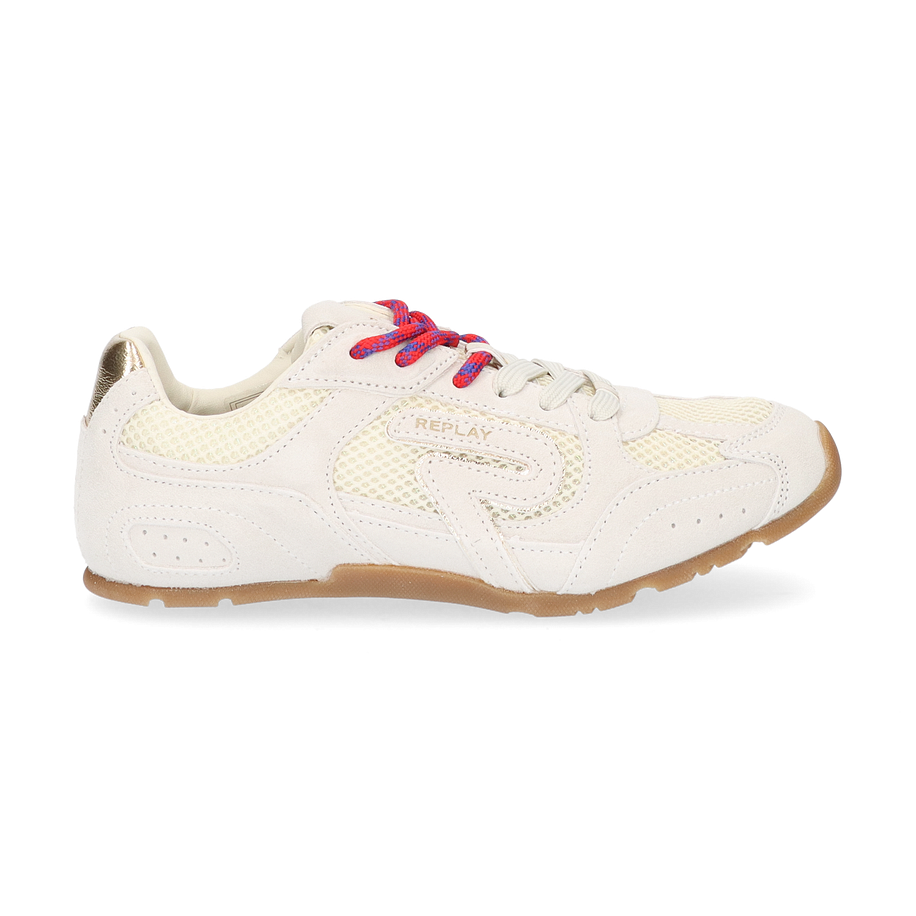 Entdecken Sie den stilvollen Sneaker von Replay in einem eleganten Beige-Ton, der sich perfekt für Damen eignet. Das Design kombiniert gekonnt Leder und sonstige Materialien im Obermaterial mit einer modernen Ästhetik. Die auffälligen roten und blauen Schnürsenkel setzen einen lebendigen Akzent, während die goldenen Details einen Hauch von Luxus verleihen. Die Gummisohle bietet nicht nur hervorragenden Halt, sondern auch eine robuste Basis für den täglichen Gebrauch.
